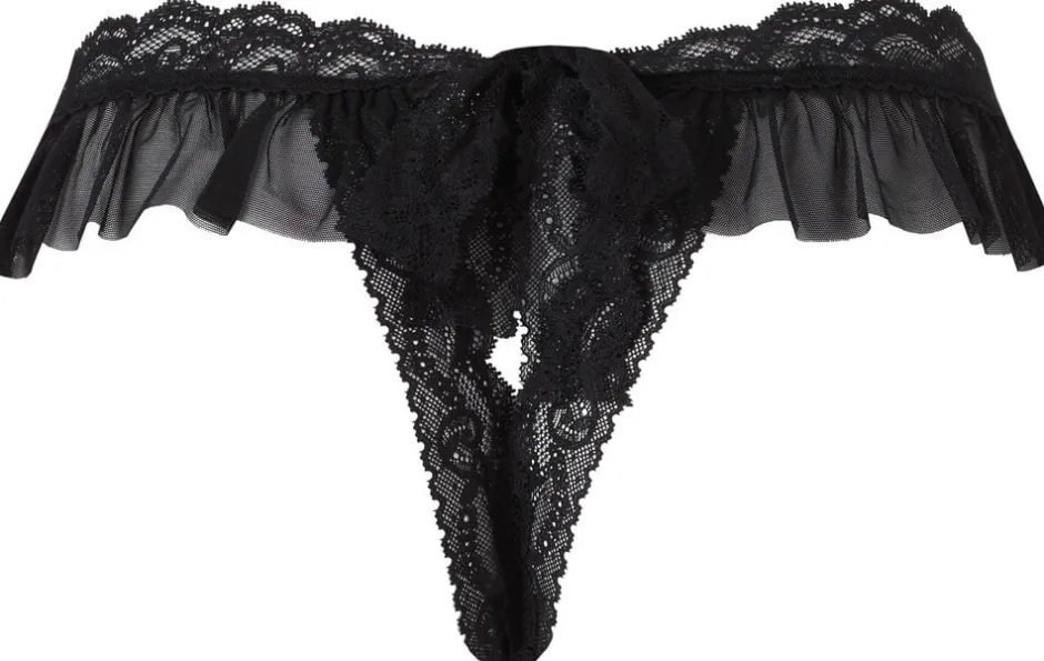 G-streng som er åben forneden og bindes med elegant sløjfe bagpå.