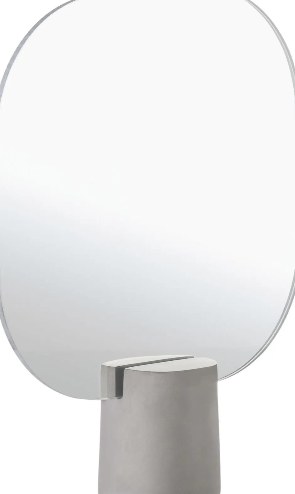 Bordspejlet i hærdet glas med betonfod har et organisk og enkelt udtryk. Det stjæler ikke rummet, men glider naturligt ind i indretningen på både badeværelse, soveværelse og entrehylde. Beton er et populært materiale, da det passer godt sammen med naturmaterialer som træ, keramik og sten. Desuden har beton den fordel, at det bliver brændt ved lavere temperatur end keramik, så man sparer en smule på energien under produktionen. Designteamet Mavro//Lefèvre står bag denne stilsikre udvidelse af Time-universet.