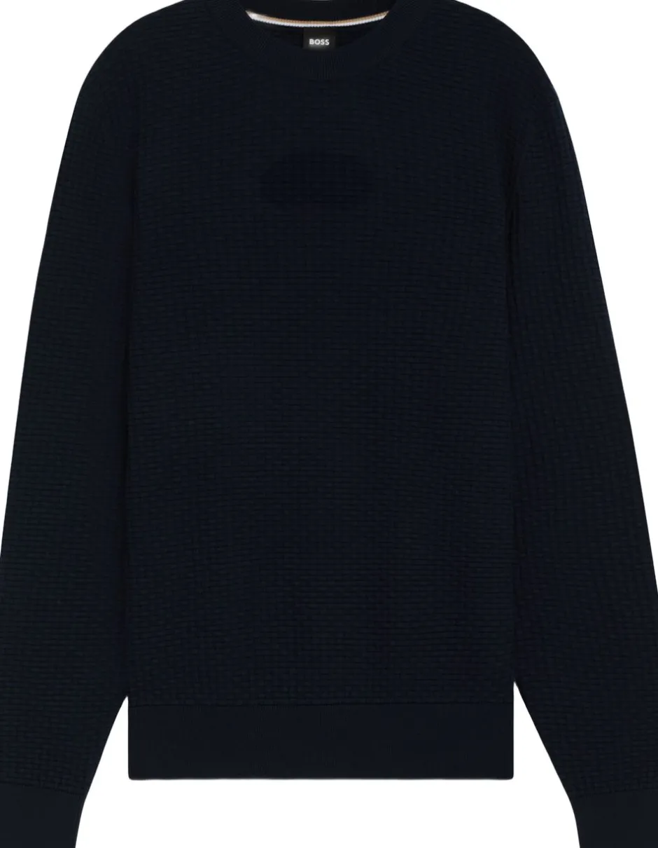Denne BOSS herretøj-sweater er strikket med en kombination af rige strukturer og er et uundværligt lag til sæsonen. Blød bomuld. Lige pasform. Dette produkt indeholder mindst 60 % bedre råmaterialer. Denne beklædningsgenstand er fremstillet af mindst 60 % bomuld fra regenerativt landbrug. Regenerativt landbrug prioriterer bevarelse og restaurering af naturlige miljøer, der sigter mod at forbedre biodiversiteten, opretholde vandkvaliteten og forbedre jordsundheden.
