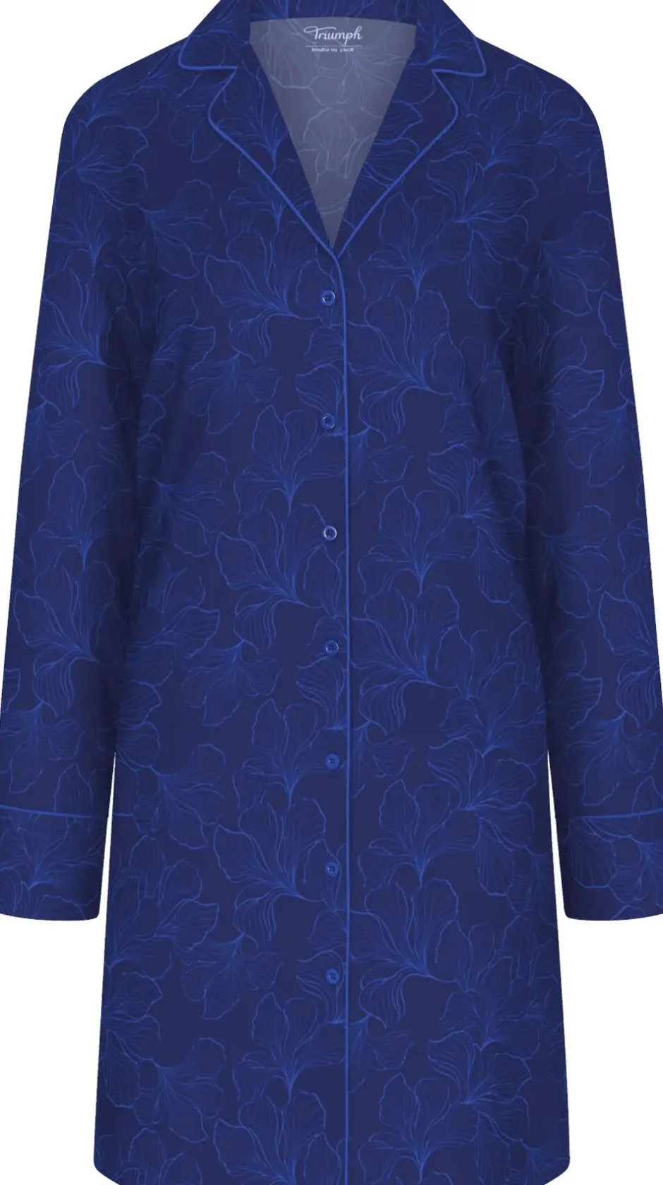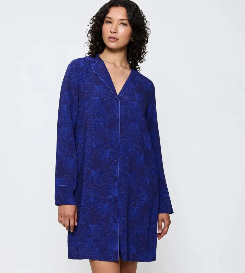 Langærmet Boyfriend-natkjole med afslappet pasform, klassisk krave og kontrastfarvede kantebånd. Designet med blødt, åndbart stof.