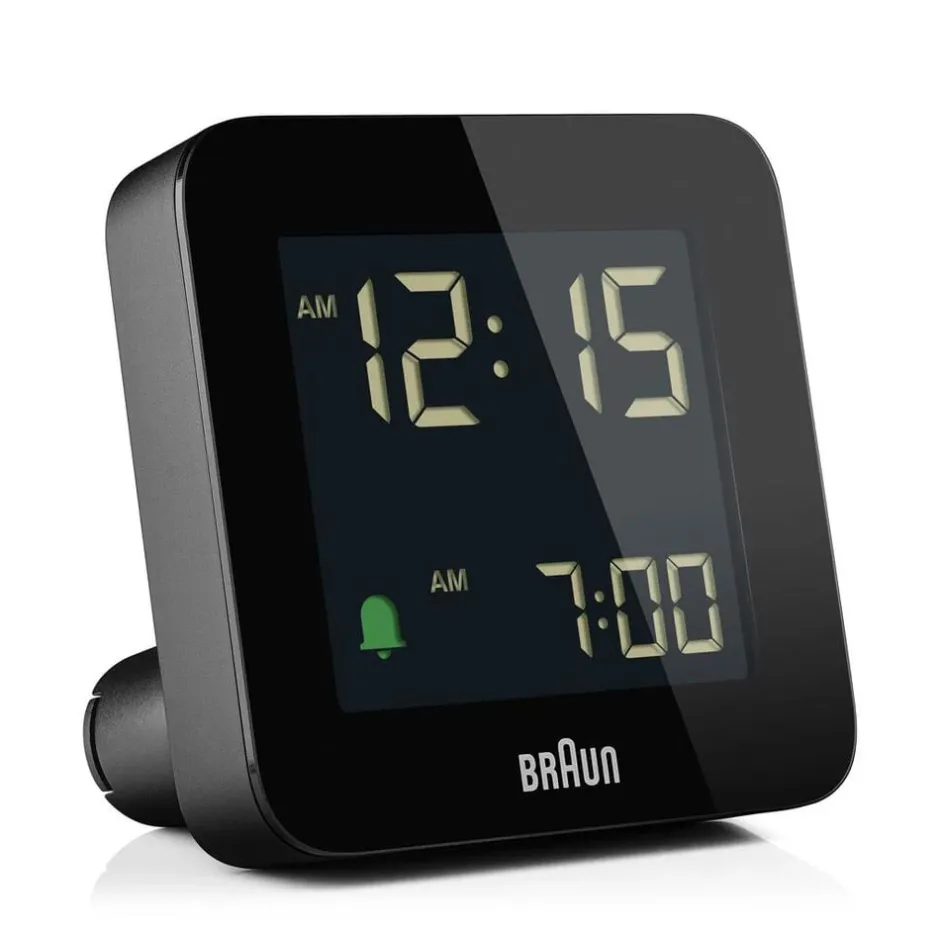 Dette rejsevækkeur har vundet ikke mindre end to priser for sit unikke design. Her får du alt, hvad du skal bruge for at holde styr på tiden, når du rejser ud i verden. LCD display. Snooze-funktion. Quick set-funktion.