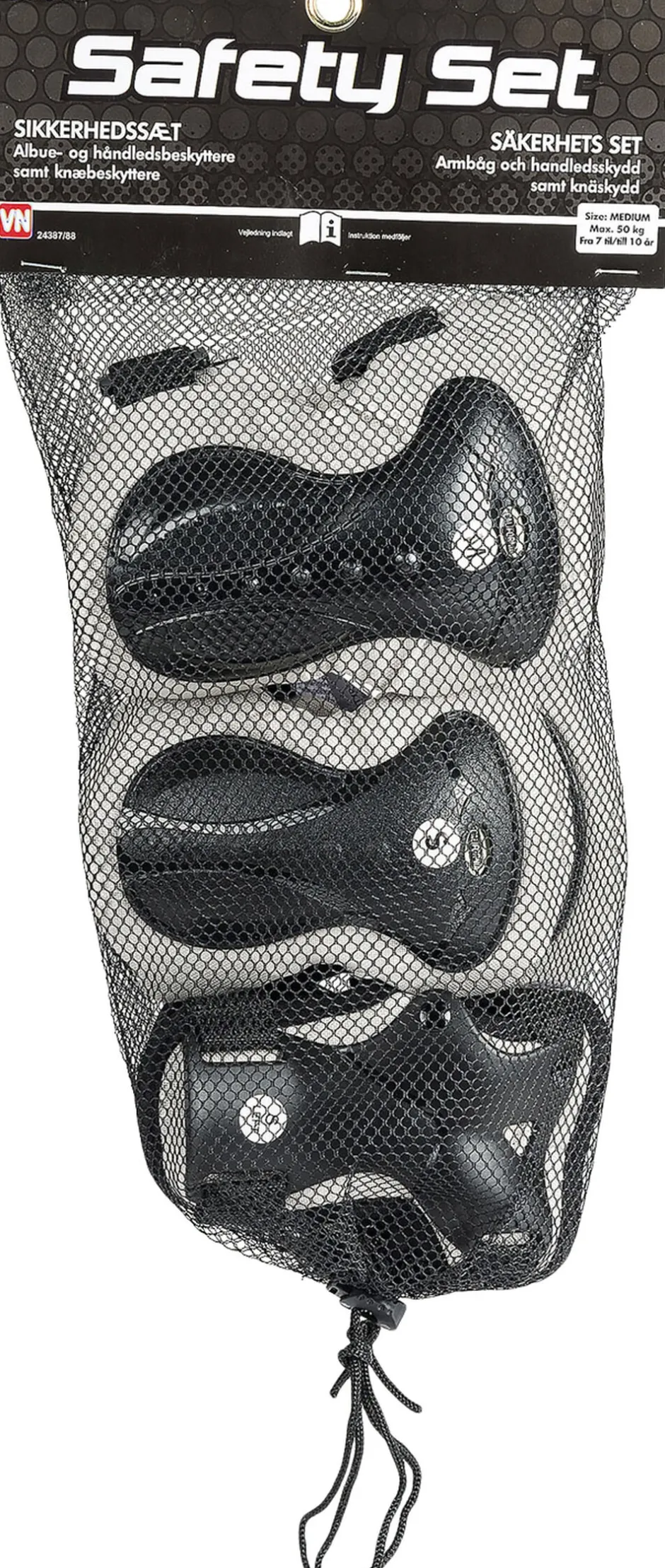 California Pro sikkerhedssæt Med håndleds-. albue- og knæbeskyttere i praktisk net Str M (7-10 år)