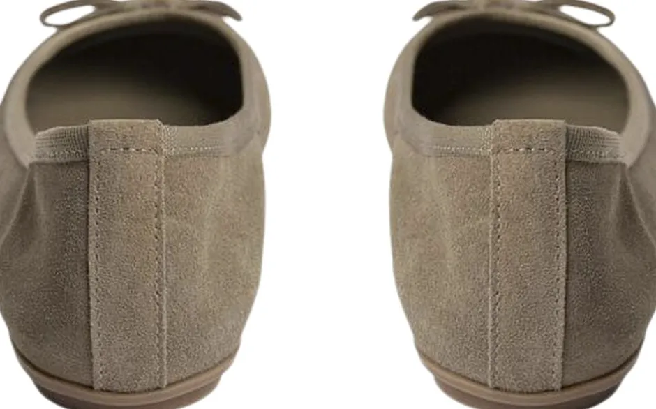 Sød ruskind ballerinasko i en smuk dark brown med sløjfe over vristen.