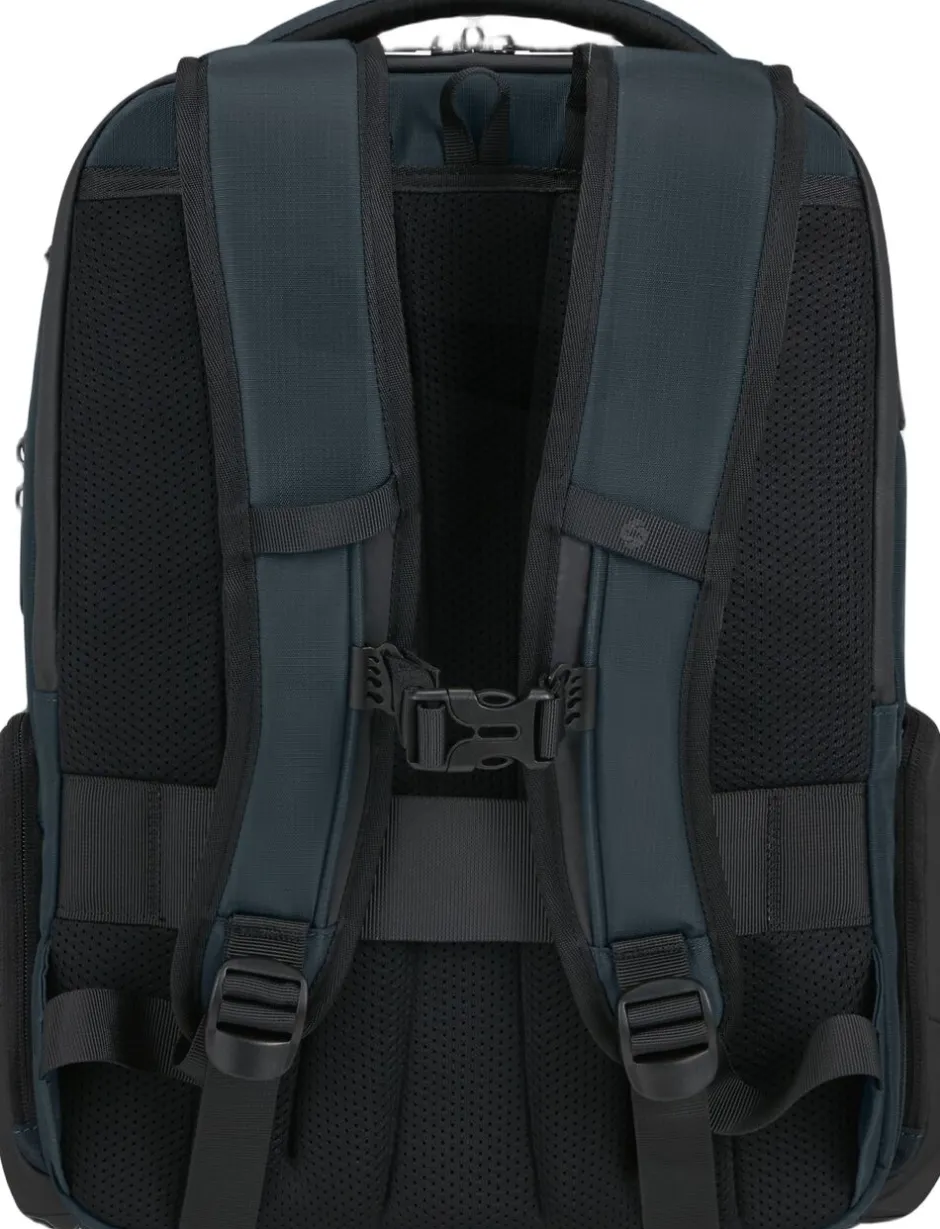 Computer rygsæk med plads til 14,1″ PC og 10,5″ tablet, både det indvendige og udvendige stof er lavet af genbrugsplast, flaskeholder i siden, frontlomme med lynlås, brystrem, ergonomiske stropper, rumindhold 20,5 l, vægt 1 kg. 2 års garanti.