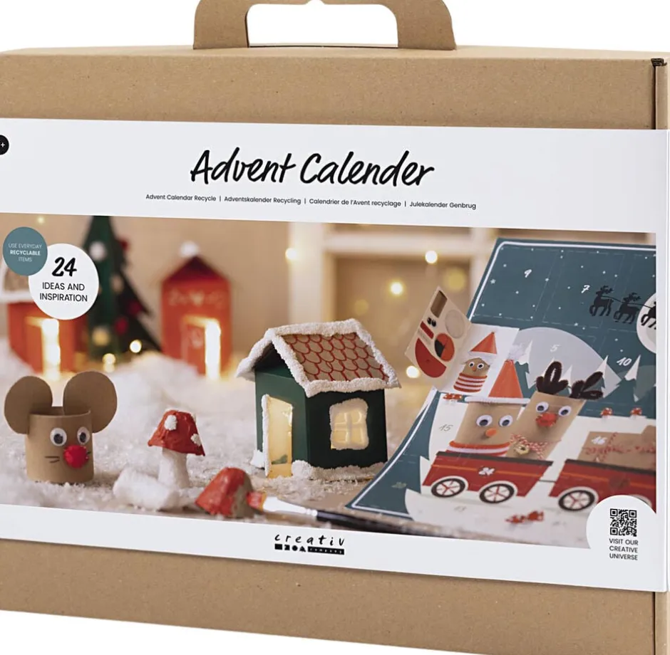 Tæl ned til jul med 24 krea-projekter af genbrug, og skab et unikt vinterlandskab. Kalenderen indeholder al den vejledning I behøver. For børn og voksne er adventskalendere og julekalendere noget af det bedste ved julen. Det skaber en forventningsglæde i december og de fleste elsker glæden ved de små overraskelser, som venter på en. En julekalender er nemlig en påmindelse om, at julen nærmer sig, og en adventskalender er med til at gøre hver søndag i advent ekstra særlig. Med denne julekalender får børnene en vaskeægte genbrugsjul. Kalenderen har 24 låger og hver låge gemmer på et sjovt, nyt genbrugsprojekt. Gå på jagt efter æggebægere, mælkekartoner og toiletruller og giv det nyt liv med de kreative materialer, der medfølger. Resultatet blive den fineste vinterlandskab, som vokser sig større dag for dag.