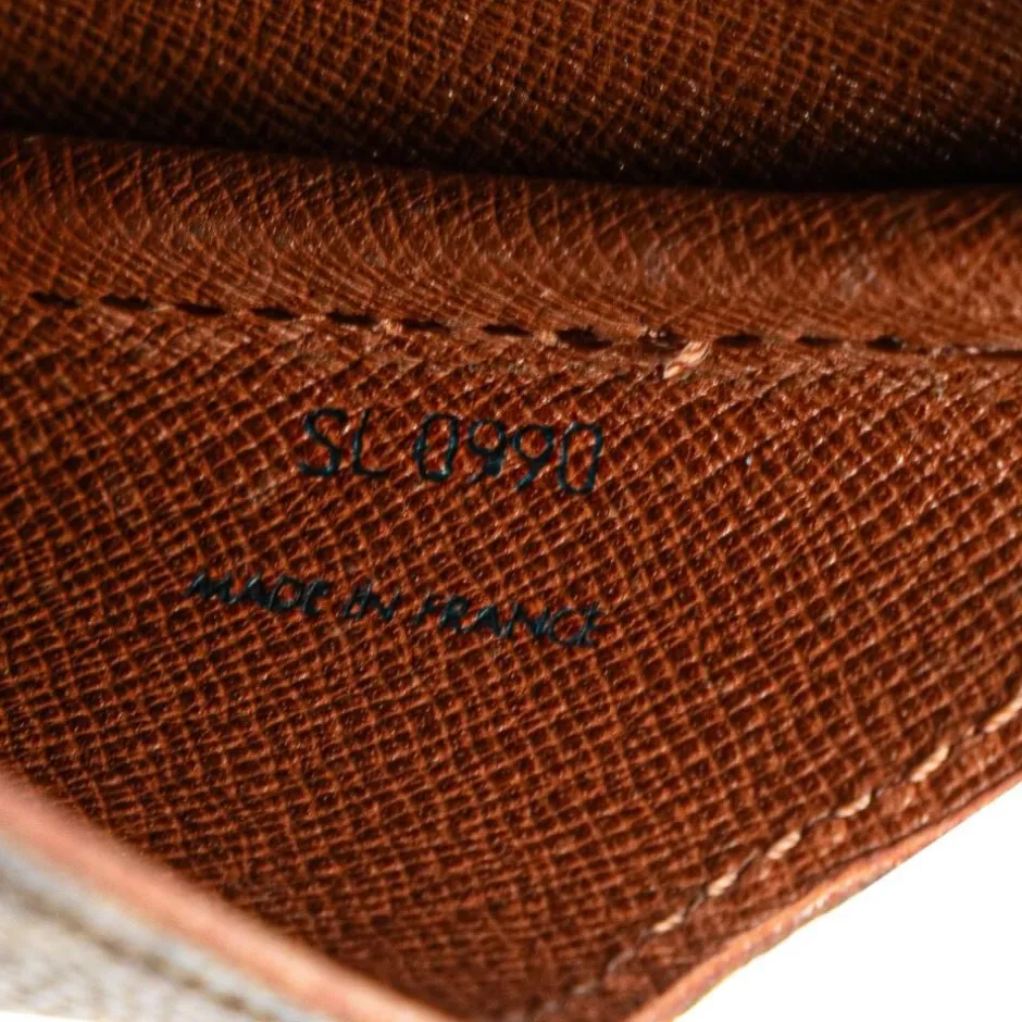 The Cartouchiere MM features a monogram canvas body with vachetta leather trim, an adjustable flat vachetta leather strap, and a front flap with a belt buckle closure. It carries a B condition rating. Exterior Back Scratched. Exterior Back stained with Other. Exterior Bottom Discolored, Scratched. Exterior Bottom stained with Other. Lock Rusty/Tarnished, Scratched. Exterior Corners Worn. Exterior Front Creased, Discolored, Scratched, Worn. Exterior Handle Creased, Discolored. Exterior Handle stained with Water Mark, Transfer Of Color. Interior Pocket stained with Other. Interior Lining Scratched, Worn. Interior Lining stained with Pen Mark, Other. Practical Attachment Rusty/Tarnished, Scratched. Dimensions: Length 21cm, Width 7.5cm, Height 18cm, Shoulder Drop 55cm. Original Accessories: This item has no other original accessories. Louis Vuitton pieces do not come with an authenticity card, please refer to the production date code within the bag for its age and as an authenticity reference. Serial Number: SL0990. Color: Brown. Material: Canvas x Monogram Canvas, Leather x Vachetta leather