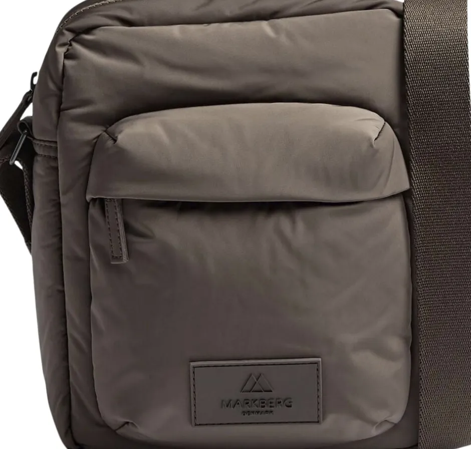 Rush Crossbody bag fra Markberg er en smart og praktisk puffer taske som er produceret i 100% genanvendt polyester. Tasken er vandafvisende og lavet i et ekstra slidstærkt materiale. Tasken lukkes med lynlås og har en stor lomme med lynlås på fronten. Udover det store praktiske rum, er der også en lynlåslomme indvendigt. Stroppen på tasken kan justeres i længden. Markberg logoet på fronten er lavet i vegansk silikone, hvor der ikke er brugt animalske materialer. Taskens for er 100% genanvendt polyester. Mål: 19 cm x 25 cm x 8 cm