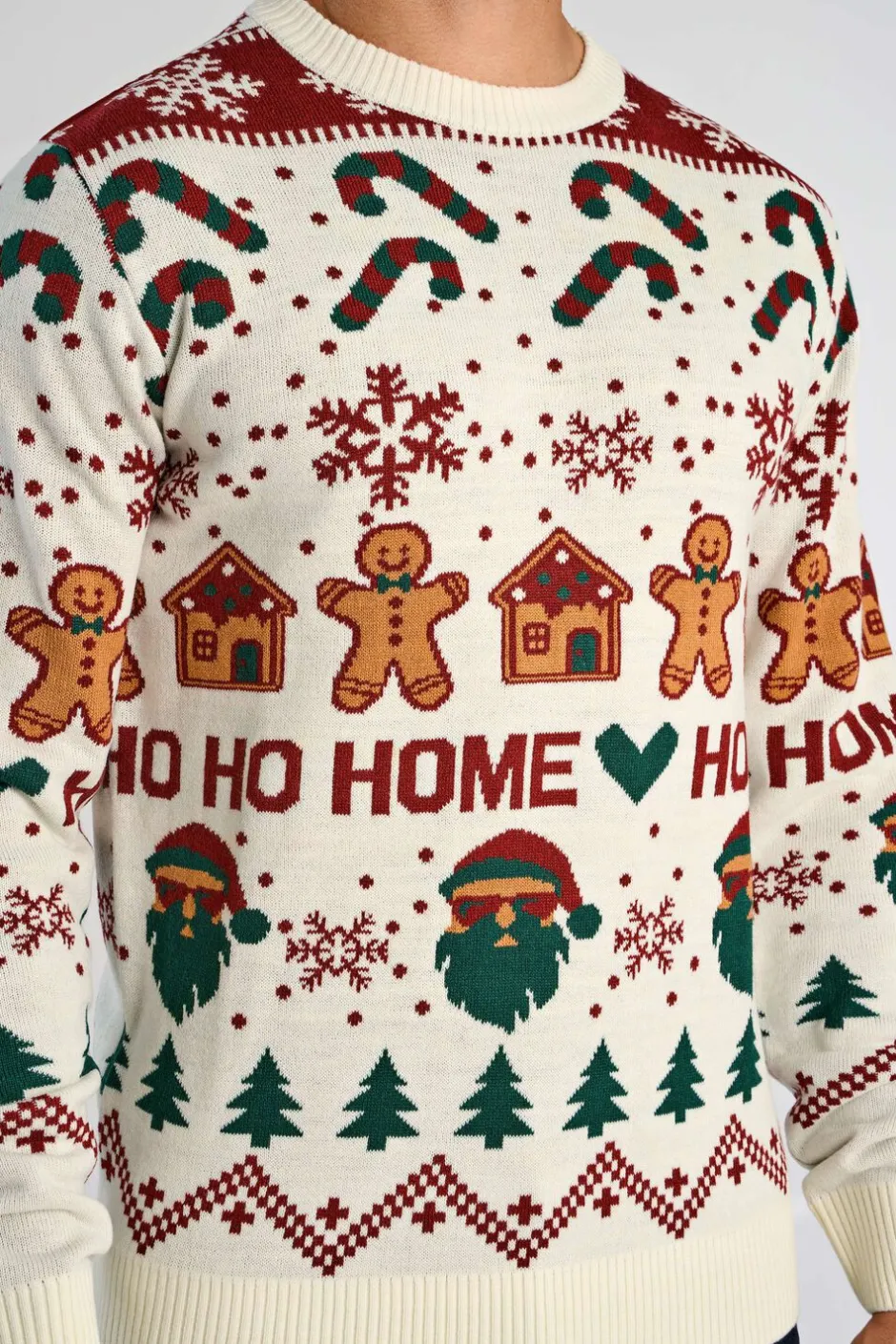 – Unikt design: Sweateren prydes af farverige julemotiver, der inkluderer julesne, peberkager og juletræer, hvilket gør den til et iøjnefaldende valg til enhver julefejring.
