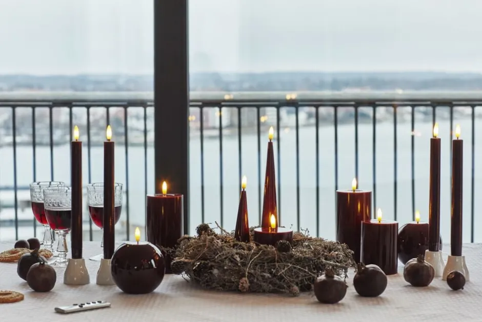LED lak kronelys med 3D flamme der lyser med et varmt hvidt lys, pakke med 2 stk