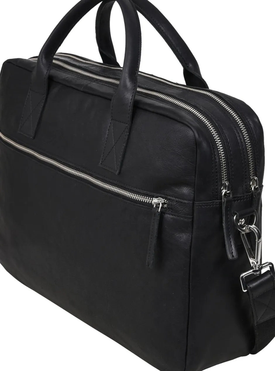 Axel i Catania skind fra Adax er en arbejdsmappe i kraftigt kalveskind og er inddelt i to hovedrum, der begge åbnes med lynlås. I det bagerste sidder en polstret PC-lomme og i det forreste finder du stiklommer, lynlåslomme samt plads til dine kuglepenne. Mappen har 2 polstrede bærehanke samt justerbar skulderrem. Vi anbefaler Adax læderbalsam samt Adax protections spray.