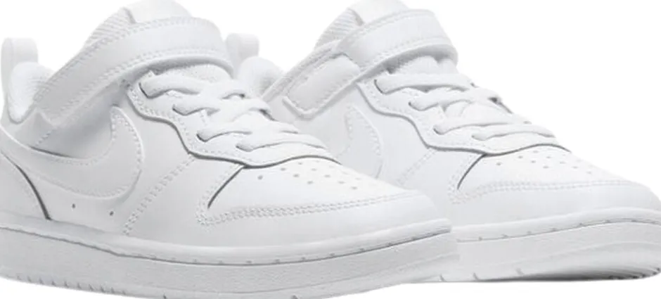 Nike Court Borough Low 2 har alle funktioner til, at dit barns fødder har det godt. Overdelen er i ren læder, så komforten spiller maksimalt, mens ydersålen i gummi yder solid slidstyrke. Derudover gør elastiske snørebånd og velcro til en leg at få skoene lynhurtigt af og på, så dit barn kan fortsætte dagen, hvor den slap.