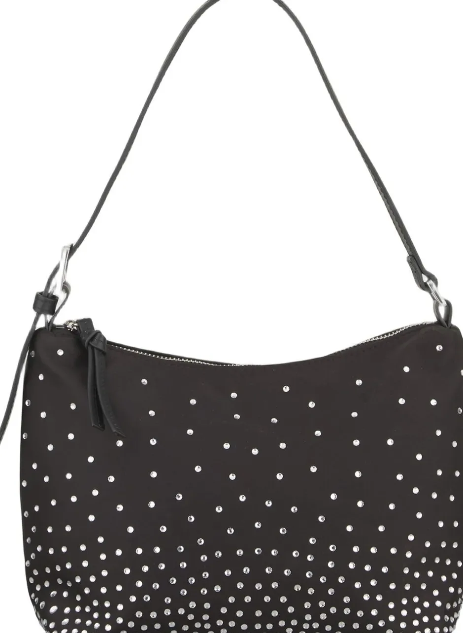Glimsy Ginni S Bag designet af Becksöndergaard er en sej taske der kan bruges til enhver, festlig lejlighed. Den indeholder et stort rum, med en lille indvendig lynlåslomme, og lukkes med lynlås. Den er designet i 100% polyester med små similisten på og måler 22 x 18 cm. Den korte hank kan bæres både på skulderen eller i hånden og kan justeres alt efter behov.