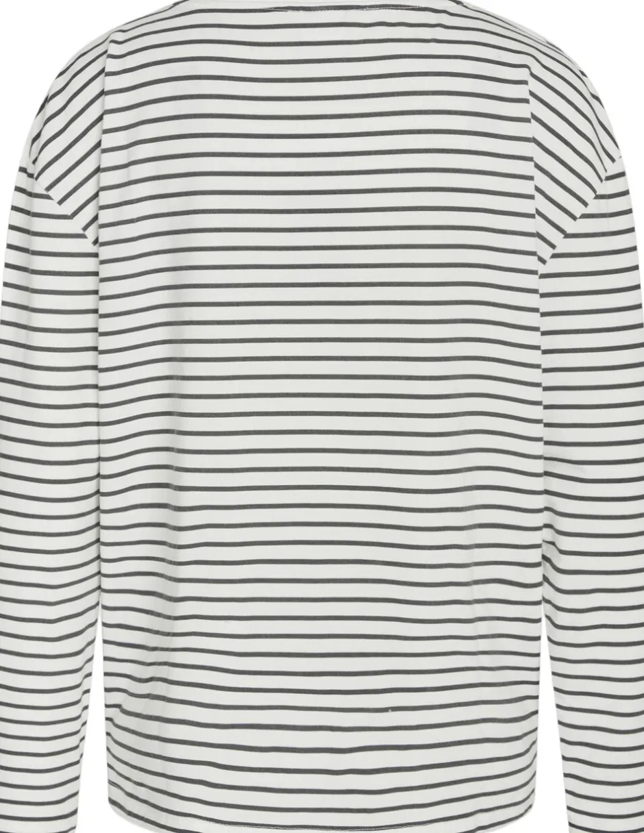 En blød og let langærmet t-shirt i bamboo-viskose og økologisk bomuld med 5% elastan, der giver behagelig stræk og komfort hele dagen. De brune striber skaber et roligt, feminint udtryk, ideel til afslappede og stilrene looks.