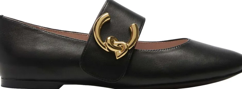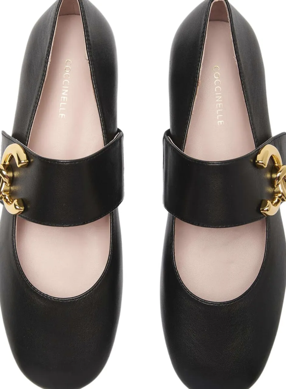 Coccinelle ballerina i smuk, blød skindkvalitet. Skoen er enkel i modellen med afrundet snude. Fronten er prydet med en rem med Coccinelle’s flotte C-me spænde. Smuk ballerina i lækker kvalitet. Hælhøjde: 8 mm.