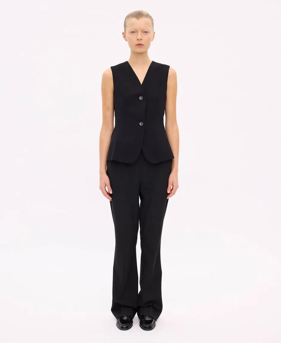 • Skjult lukning: Bukserne har en skjult knap- og lynlåslukning på fronten, hvilket giver et rent og pænt look.