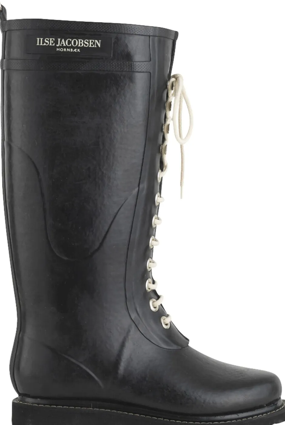 De ikoniske snørede gummistøvler fra Ilse Jacobsen er knælange gummistøvler med en dekorativ D-ring midt på ryggen og et logo på skaftet. Disse gummiringe er lavet af bæredygtigt høstet naturgummi og er blevet skåret i hånden. Dette materiale kan modstå temperaturer ned til -20 grader Celsius. Gummisammensætningen er 80 % ren, naturlig gummi og 20 % hemmelig formel. Vores støvler er helt PVC-fri og indeholder ingen animalske biprodukter. Hvis det ikke behandles regelmæssigt, vil naturgummi udvikle en hvid overflade i årenes løb på grund af tabet af æterisk Olie. For at holde dine støvler i god stand i mange år fremover, anbefaler vi at behandle dem en gang om måneden med vores Olie. Nye snørebånd fås i flere farver