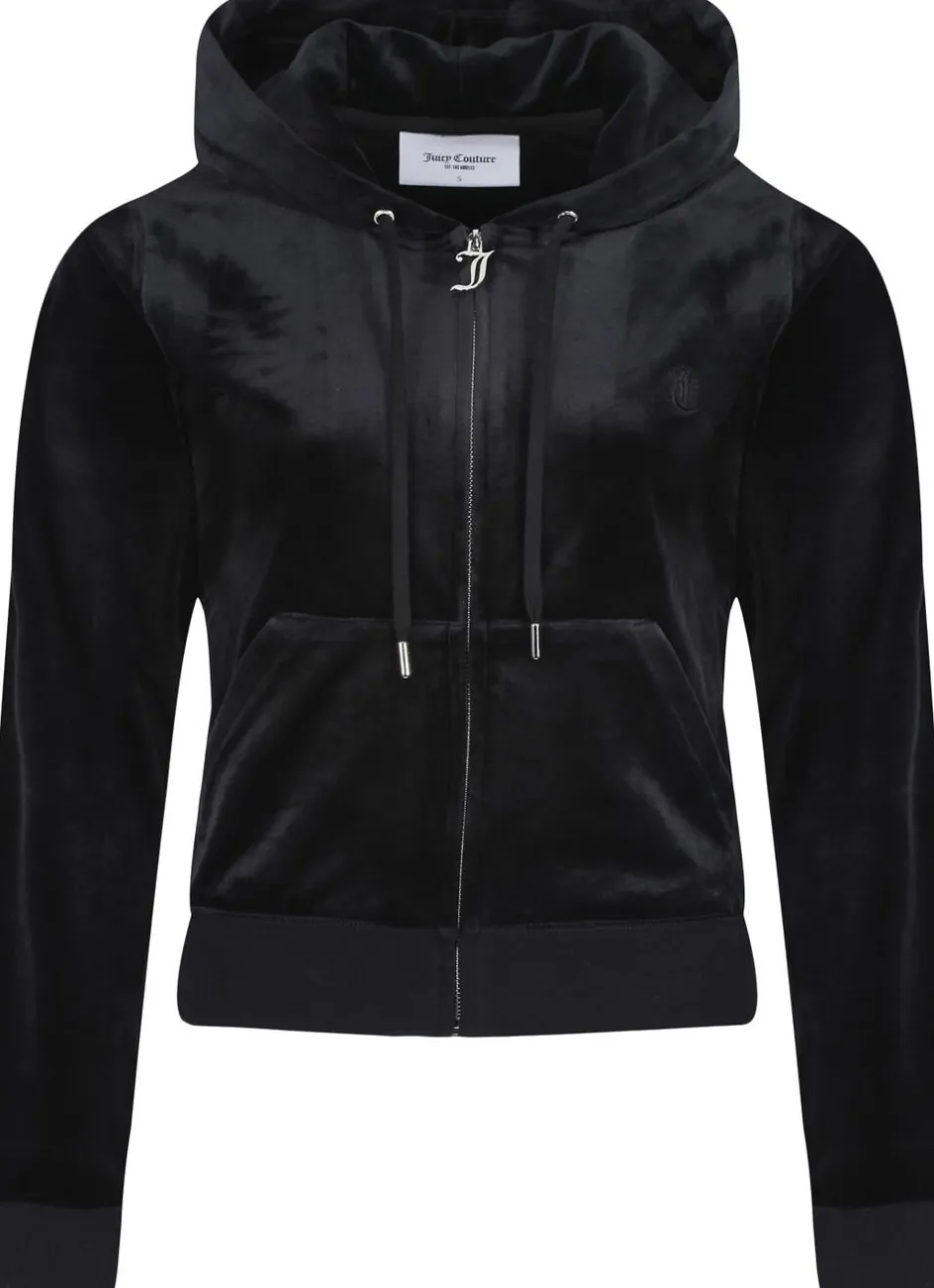 Hættetrøje med lynlås i klassisk velour med sølvfarvet hardware. Slank pasform med kængurulommer og foret hætte