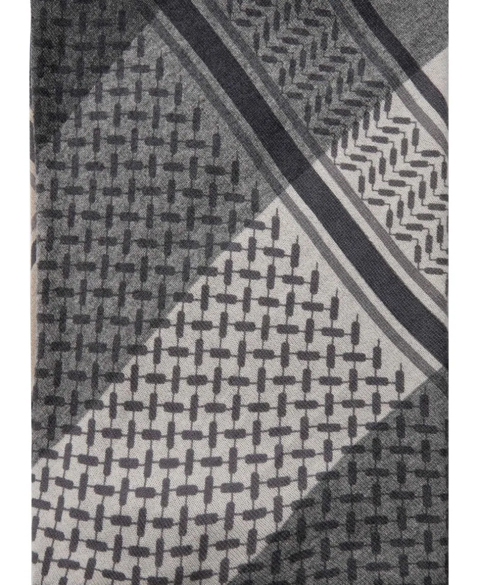 Et luksuriøst blødt, trekantformet cashmere tørklæde, med et klassisk sort Kufiya-print.