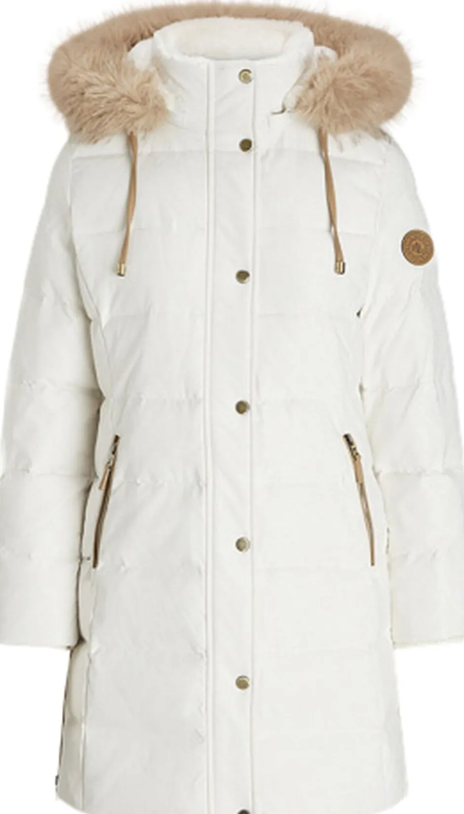 Denne kanalquiltede frakke er lige dele stilfuld og praktisk og designet med en aftagelig hætte med imiteret pelspyd, en vandafvisende skal og behagelig 450-fyld-strøm for at holde dig tør og varm. Prinsessesøm foran og bagpå fremhæver denne stils strømlinede silhuet, mens “LRL”-indgraverede metalknapper tilføjer signaturstil