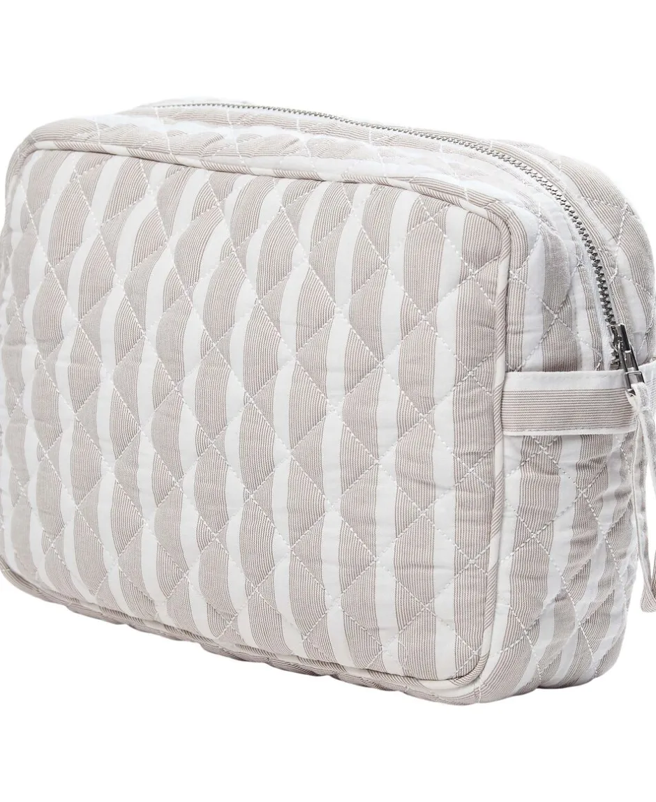 Toilettaske fra Magasin du Nord Collection i den blødeste kvalitet af 100% økologisk bomuld med GOTS-certificering. Toilettasken består af ét stort rum med lynlåslukning samt mindre inderlommer. Derudover har toilettasken et lille håndtag samt fine vatterede syningsdetaljer. En skøn toilettaske i den lækreste kvalitet.