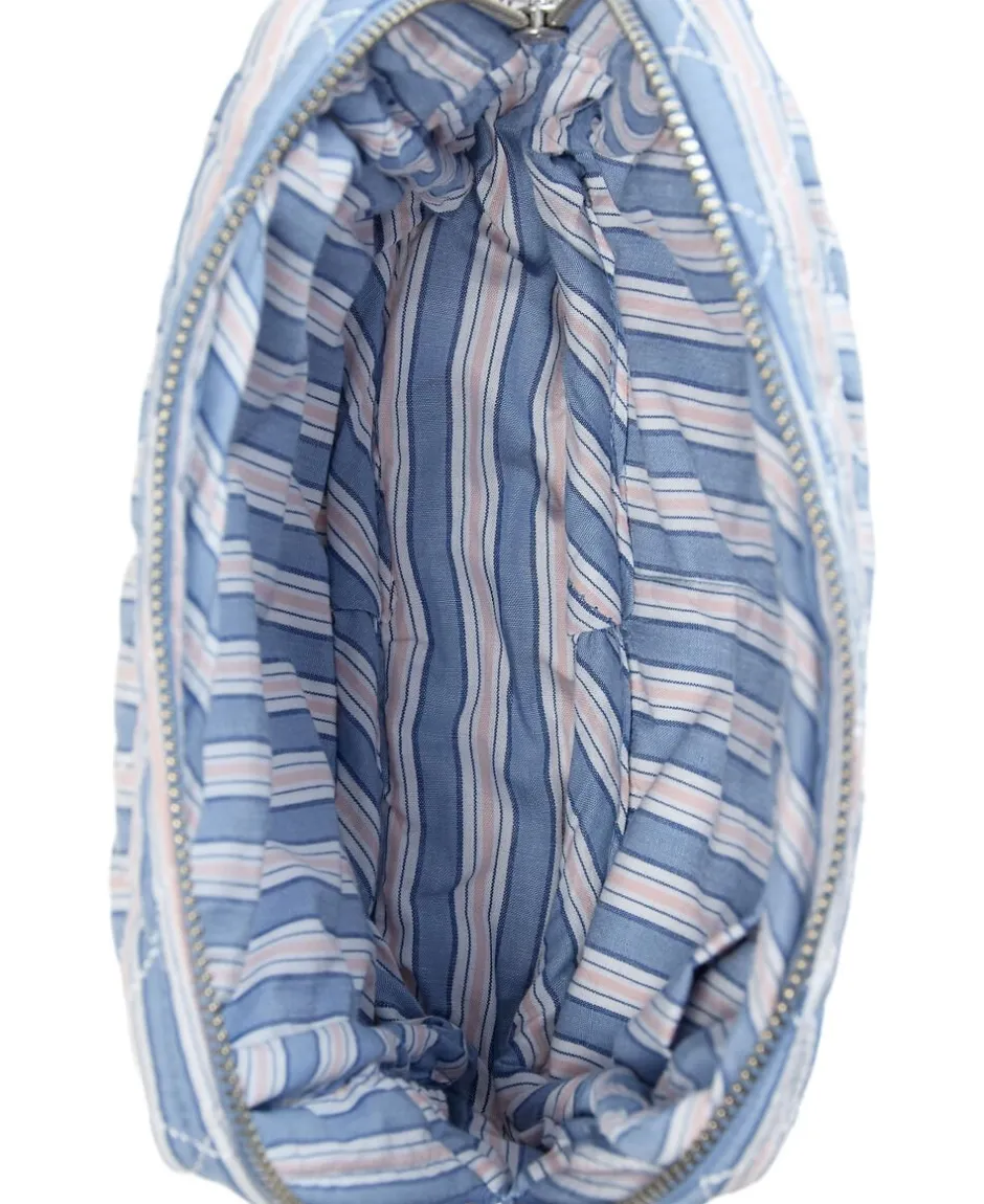 Toilettaske fra Magasin du Nord Collection i den blødeste kvalitet af 80% økologisk bomuld med GOTS-certificering. Toilettasken består af ét stort rum med lynlåslukning samt mindre inderlommer. Derudover har toilettasken fine vatterede syningsdetaljer og et stribet print. En skøn toilettaske i den lækreste kvalitet.
