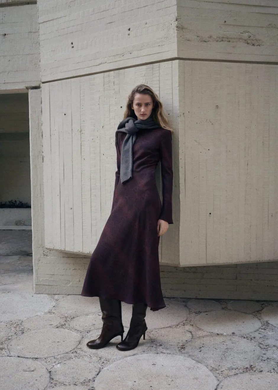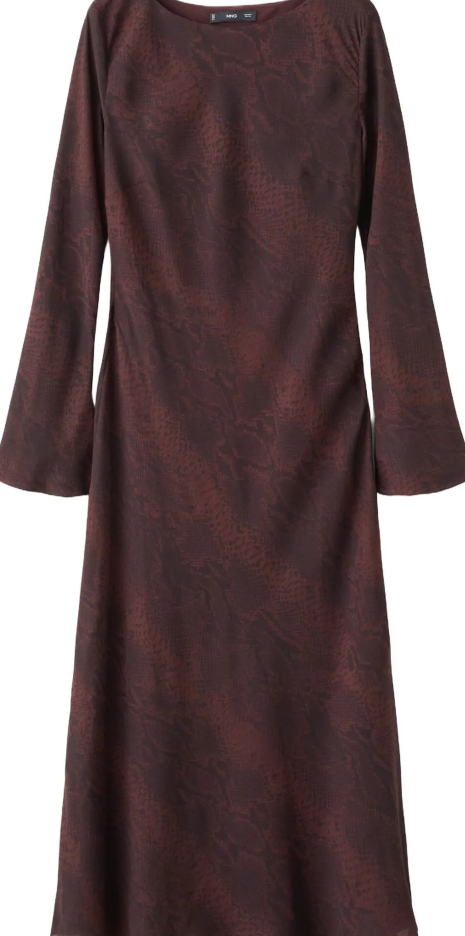 MidiDesign, A-linjeDesign, slangeprint, rund hals, lange ærmer, ingen lukning, indvendigt for.