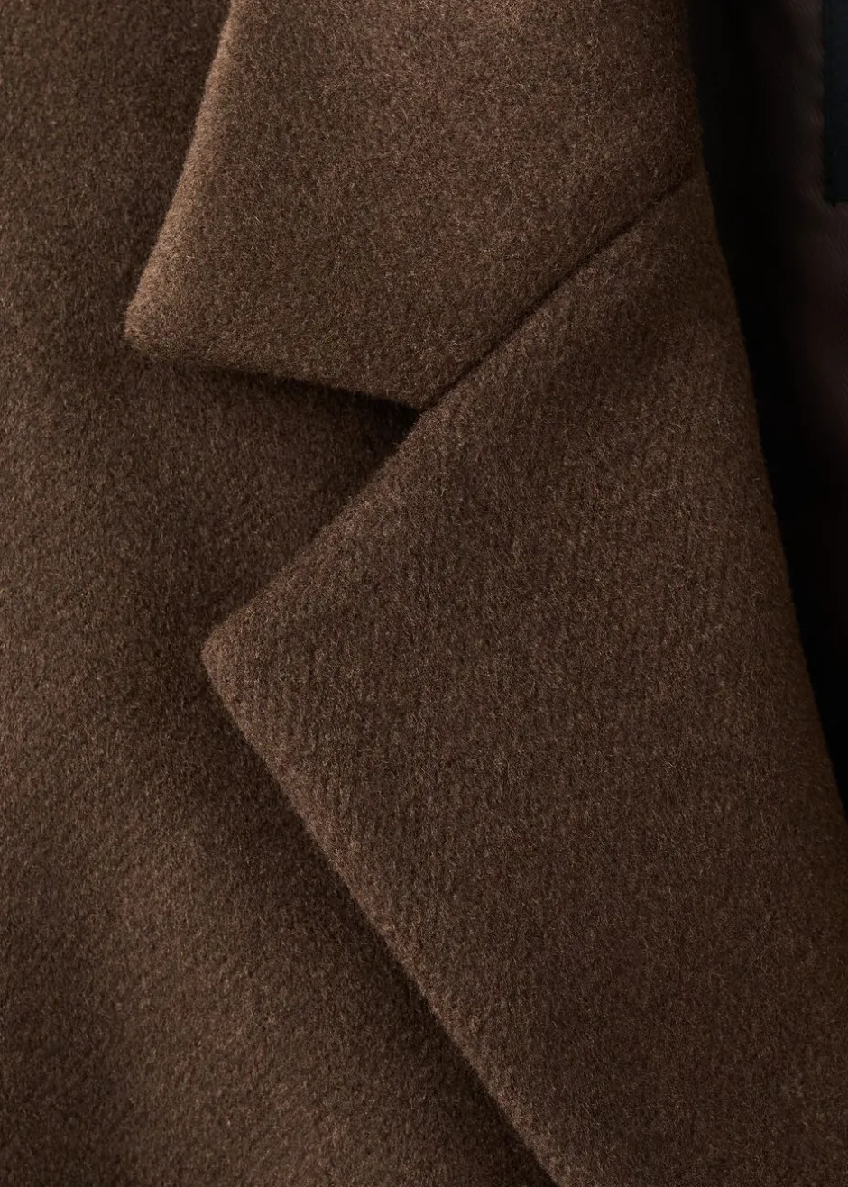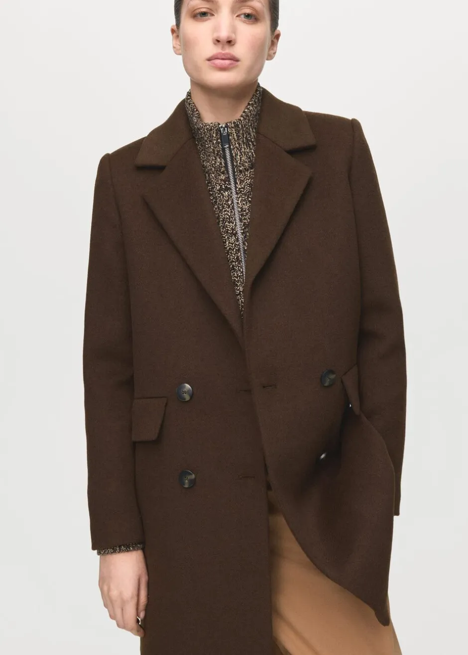 Uldblandingsstof, Available Plus, Straight Design, Midi-Design, Lapel-krave med V-udskæring, Lapel med indhak, Lange ærmer med knapper i manchetterne, To sidelommer med klap, Dobbelt knaplukning, Indvendigt for.