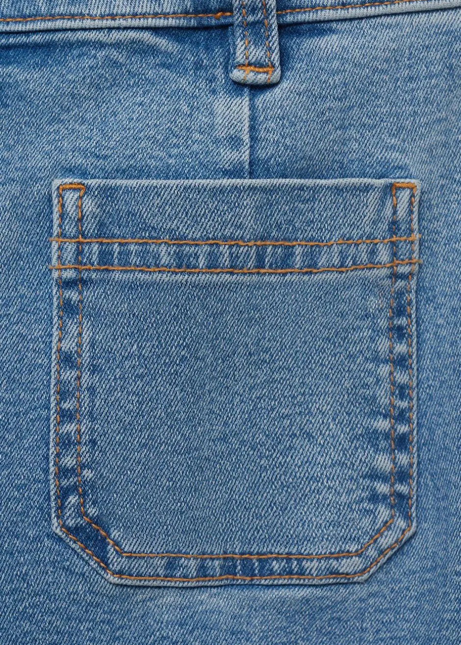 Denim-stil bomuldsstof, Fås Plus, To patch-lommer foran, Crop-Design, Flare-Design, Ankelkrave, Mellemhøj talje, Bæltestropper, To front patch-lommer, Lynlås foran og knaplukning, Inseam 70 cm,,. INGEN OVERSÆTTELSE 70,0. INGEN OVERSÆTTELSE 94,0