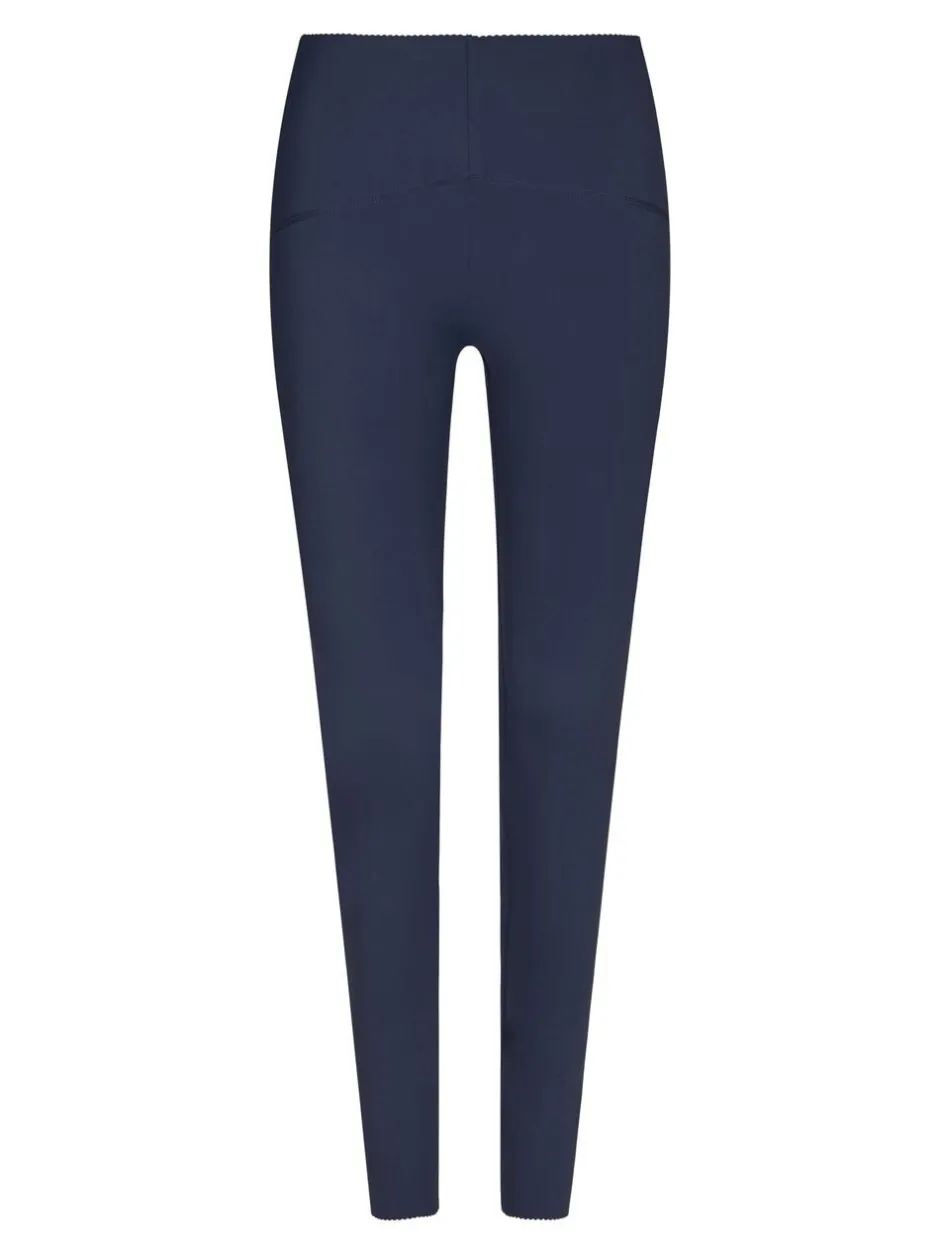 Højtaljede leggings med bølgekant i taljen. De er lavet i et materiale med stræk. Modellen er iført størrelse 36.