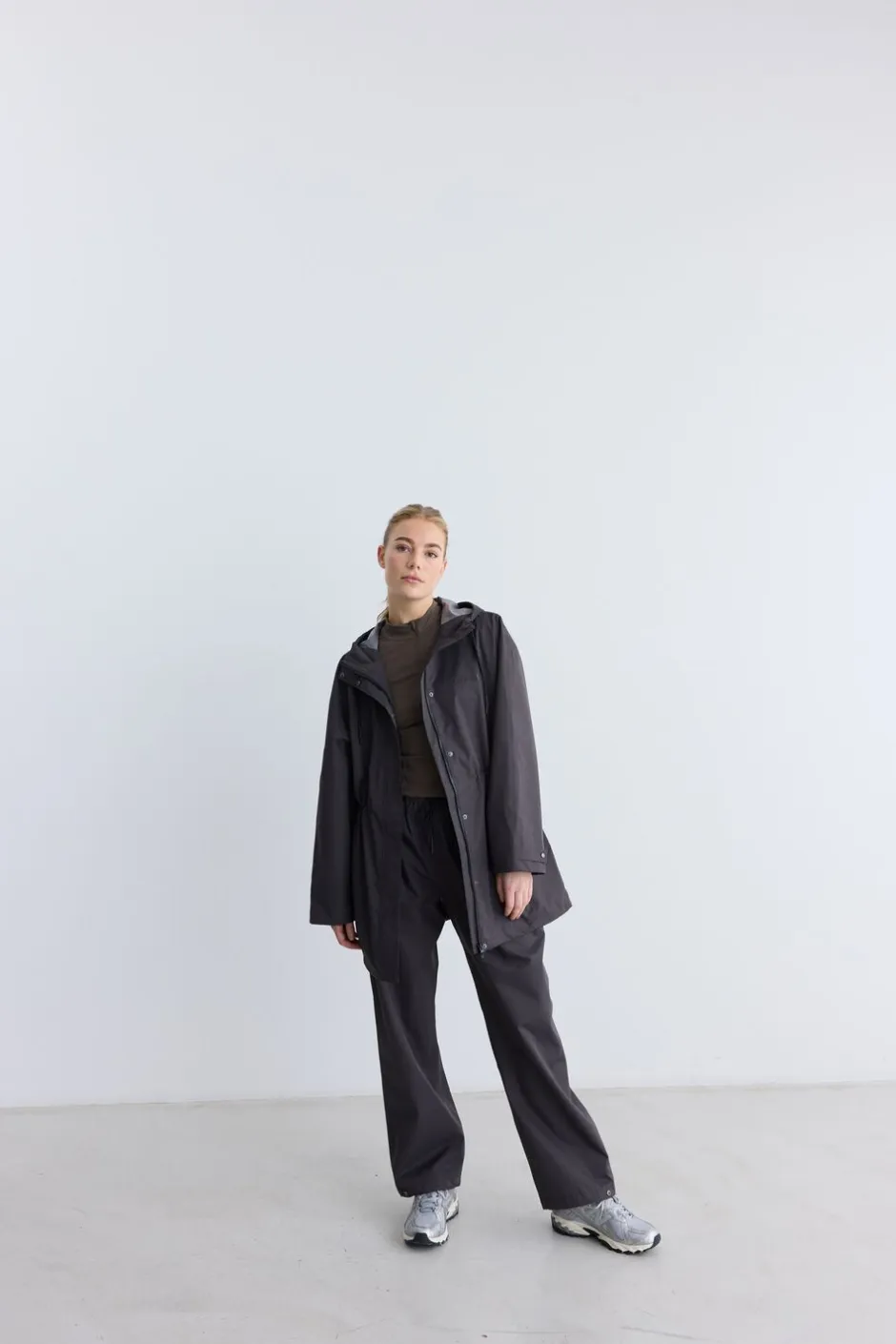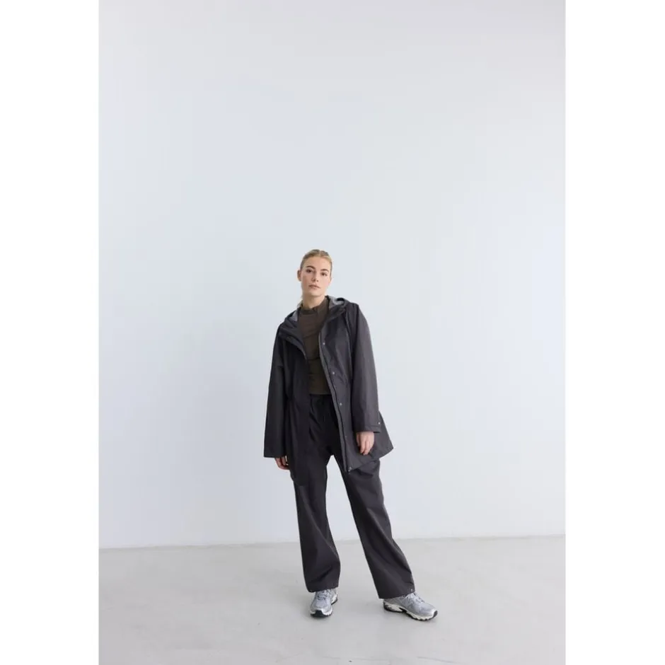 Materialer og tekniske egenskaber – 100 % Recycled polyester – Vandtæt – 10.000 mm vandsøjle – Åndbarhed – 3.000 g/m2/24t – Svejsede sømme til beskyttelse mod vejret – Behandlet med Bionic Finish® Eco af RUDOLF (en PFC-fri, fluorinfri vandafvisende belægning)