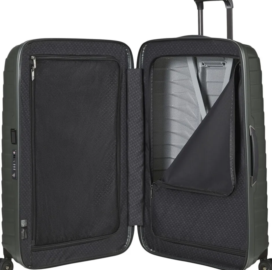 Dejlig let kabinekuffert i det nye inovative materiale fra Samsonite kaldet Roxkin, materialet er både let og meget slidstærkt. Kabinen har mulighed for udvidelse 38 til 44 l hvis du mangler plads, den har TSA lås, dobbelt trollystativ, dobbelte hjul, USB port, krydsbånd , mulighed for personalisering med initialer, navneskilt, vægt 2,2 kg. mål 55x40x20/23 cm, 10 års garanti