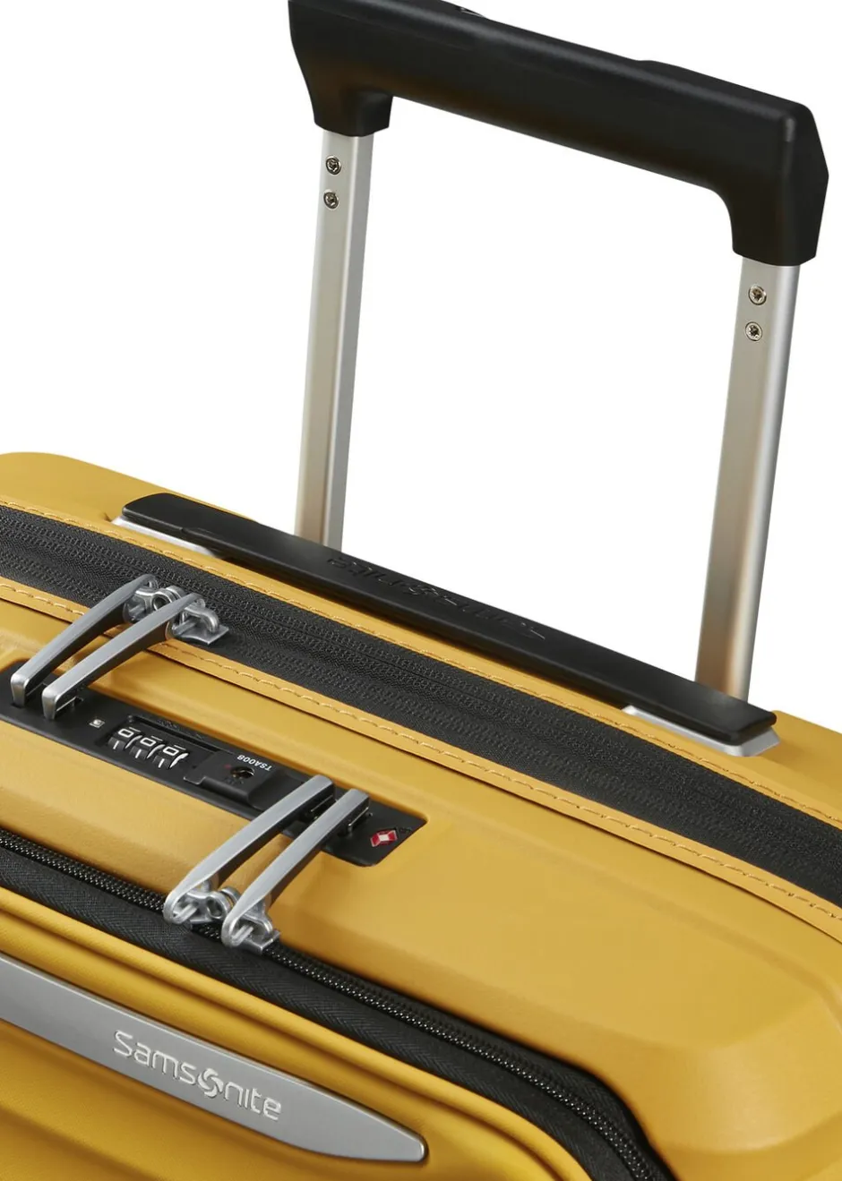 Kabinekuffert med mulighed for udvidelse, praktisk frontlomme med plads til 15,6″” pc og 10,5″” tablet, polypropylen,4 hjul,TSA lås , dobbelt trollystativ, navneskilt, vægt 2,6 kg,rumindhold 42/48 l, 5 års garanti,55x40x23/26 cm.