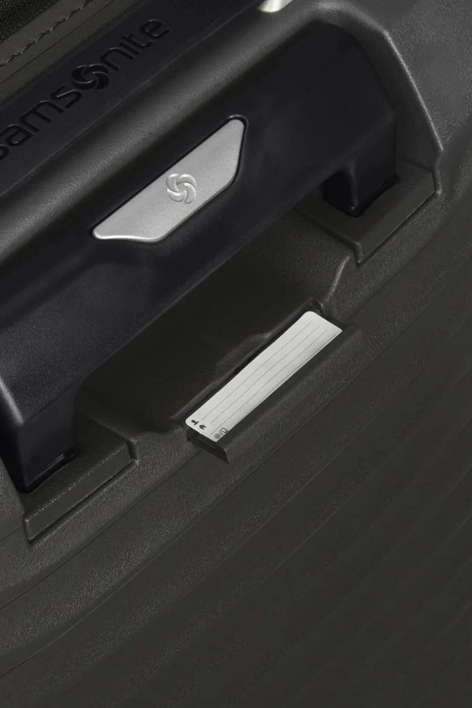 Kuffert med mulighed for udvidelse, polypropylen,4 hjul,TSA lås , indvendig stofforring lavet af genbrugte plastflasker, dobbelt trollystativ,navneskilt, vægt 3,4 kg,rumindhold 104/114l, 5 års garanti, 75x51x30/33 cm.