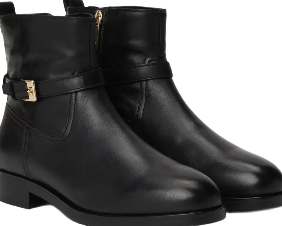Disse smarte MC-inspirerede ankelstøvler er fremstillet af glat læder med et poleret spænde med et TH-monogram for signaturstil.