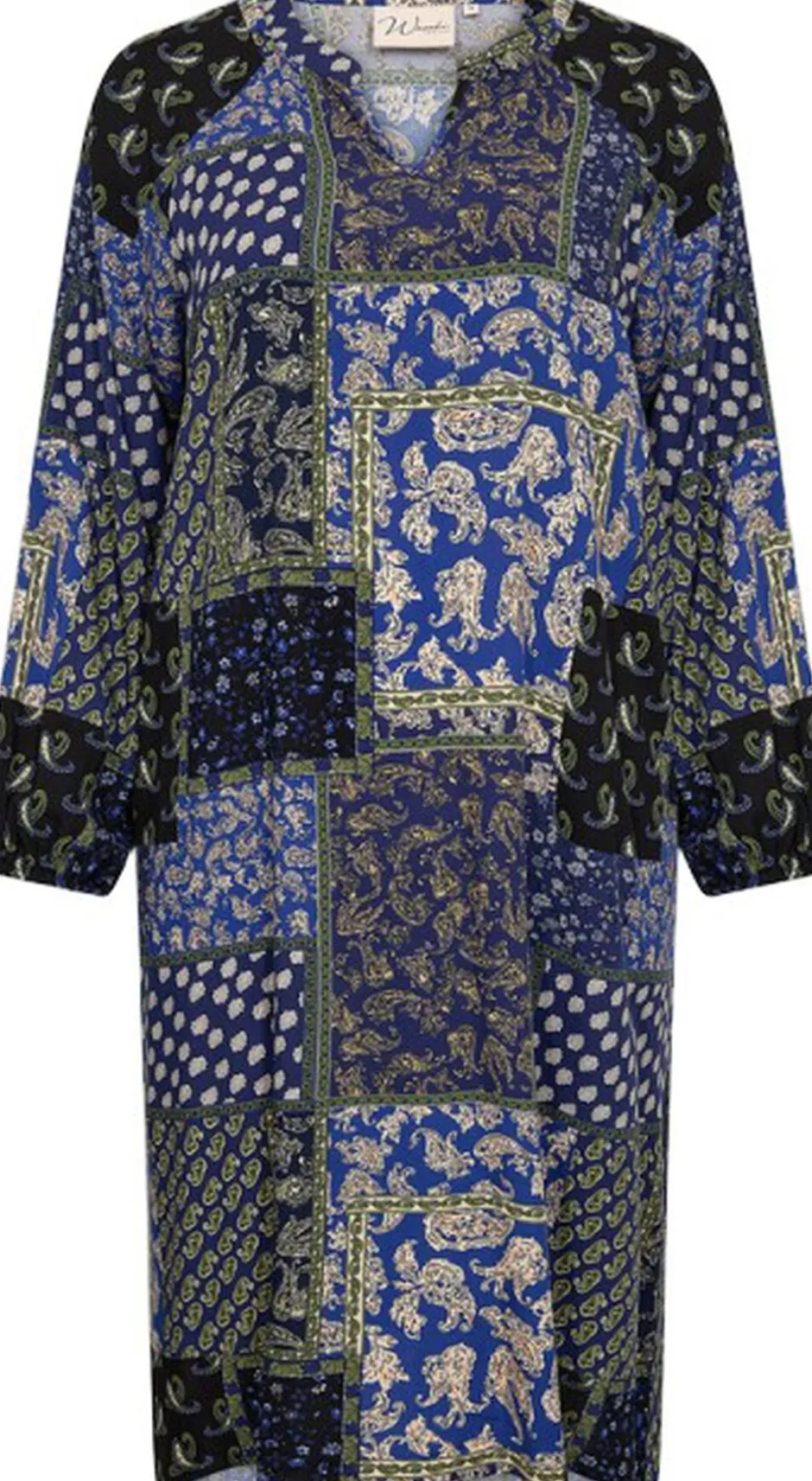 WA-NEA 3 er en kjole fremstillet af 100 % LENZING ECOVERO-viskose. Den har V-udskæring, paisleyprint og lange ærmer med knapmanchetter. Sæt den sammen med sandaler for et afslappet look eller med støvler for en mere elegant stil.