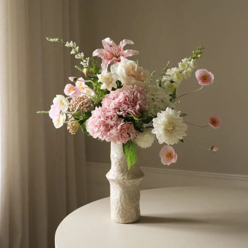 Delphiniums er kendt for deres tårnhøje spir af kronblade, og vores kunstige fortolkning indfanger denne majestætiske skønhed i livagtige detaljer. Med sin aflange stilk og rigelige blomster er Delphinium det perfekte buketelement, der giver højde og fylde til dine arrangementer. Med sin klassiske grønne og hvide farve blander blomsten sig problemfrit med minimalistiske og skandinaviske Designsensibiliteter, hvilket gør dem til det ideelle valg for dem, der sætter pris på enkelhed og raffinement i deres blomsterindretning.