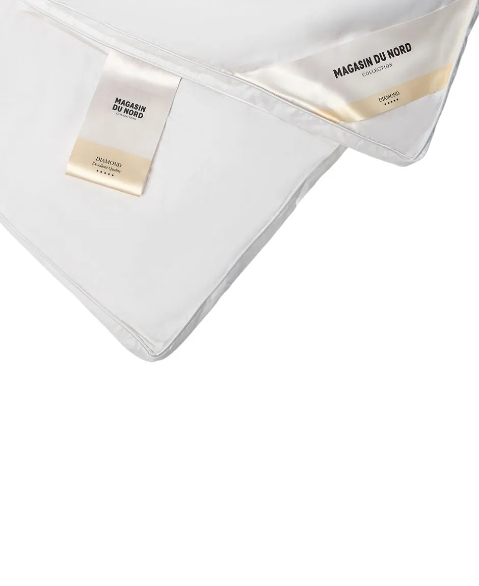 Diamant Gåsedunsdyne – Lun 140×220 cm: indeholder 560 g hvide Gåsedun med Bæreevne/isoleringsevne 800. Lækker dyne med de blødeste dun, våret er 100% Bomuld satin, hvilket giver et lækkert blødt og åndbart produkt. Hold hovedet koldt og kroppen varm med en Magasin Guld Gåsedunsdyne Lun Helårsdyne, som holder dig varm hele natten året rundt. Den lune Gåsedun helårsdyne er anbefalet til dig, der har en medium kropstemperatur eller middel rumtemperatur. Gåsedunsdynen er syet i kassetter, hvilket sikrer dig en jævn fordeling af fyldet og en fyldig dyne hver eneste dag. Dynen er deklareret af Astma-Allergi Nordic samt NOMITE-, Oeko-Tex- og Downpass-certificeret. En dyne til dig, hvor kun det bedste er godt nok.