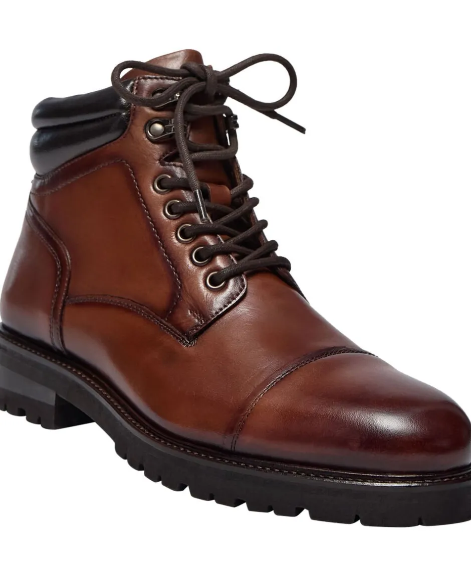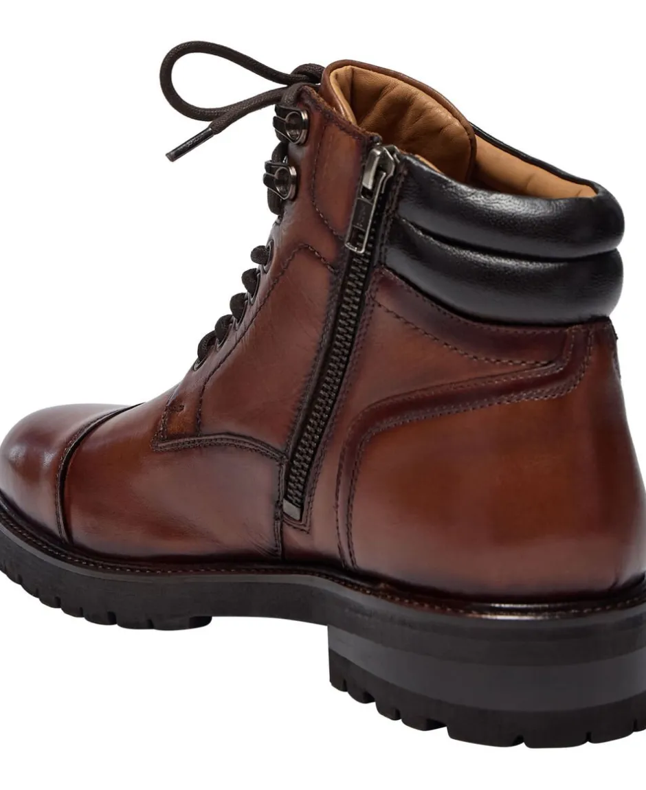 Cognac farvet vinterstøvle – De kraftige gummisåler giver støvlen et casual vinterlook. Lynlåsen på indersiden gør, at støvlen bliver nem at tage på.