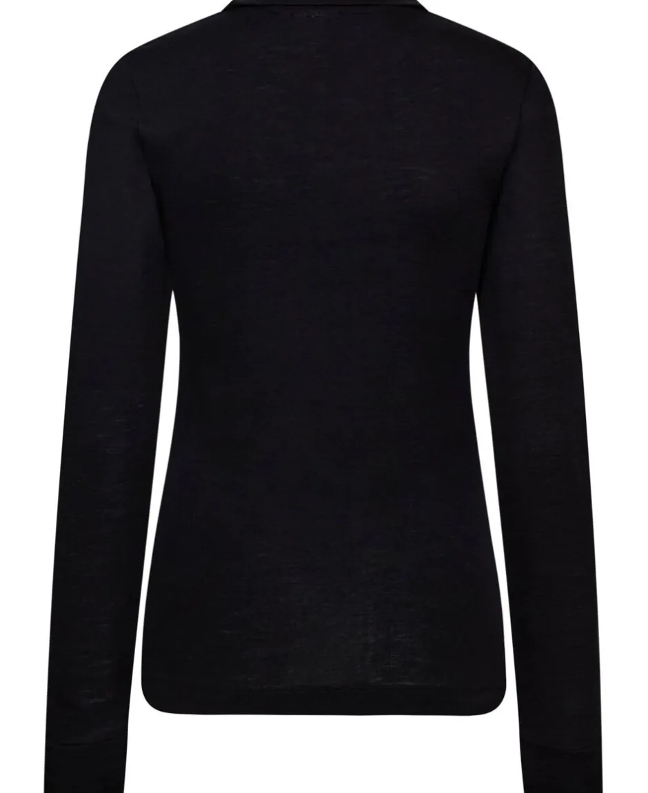 Langærmet polo fra Magasin du Nord Collection i den blødeste kvalitet af 100% uld med RWS- og OEKO-TEX® STANDARD 100-certificering. Blusen er enkel i modellen med en klassisk krave, knaplukning på brystet, lange ærmer med brede ribkanter samt en tætsiddende pasform. En elegant bluse i den lækreste kvalitet.