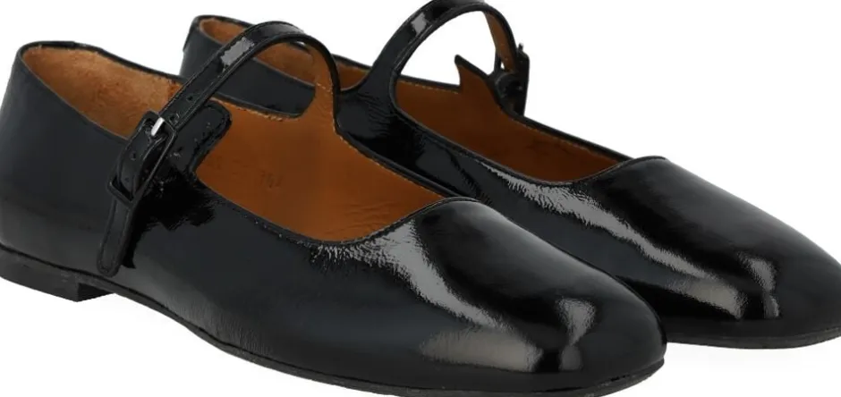 Ballerinaen har justerbar tone-i-tone spændelukning, vatteret indersål, kromfrit læderfoer og en let, blød og fleksibel ANGULUS gummisål.