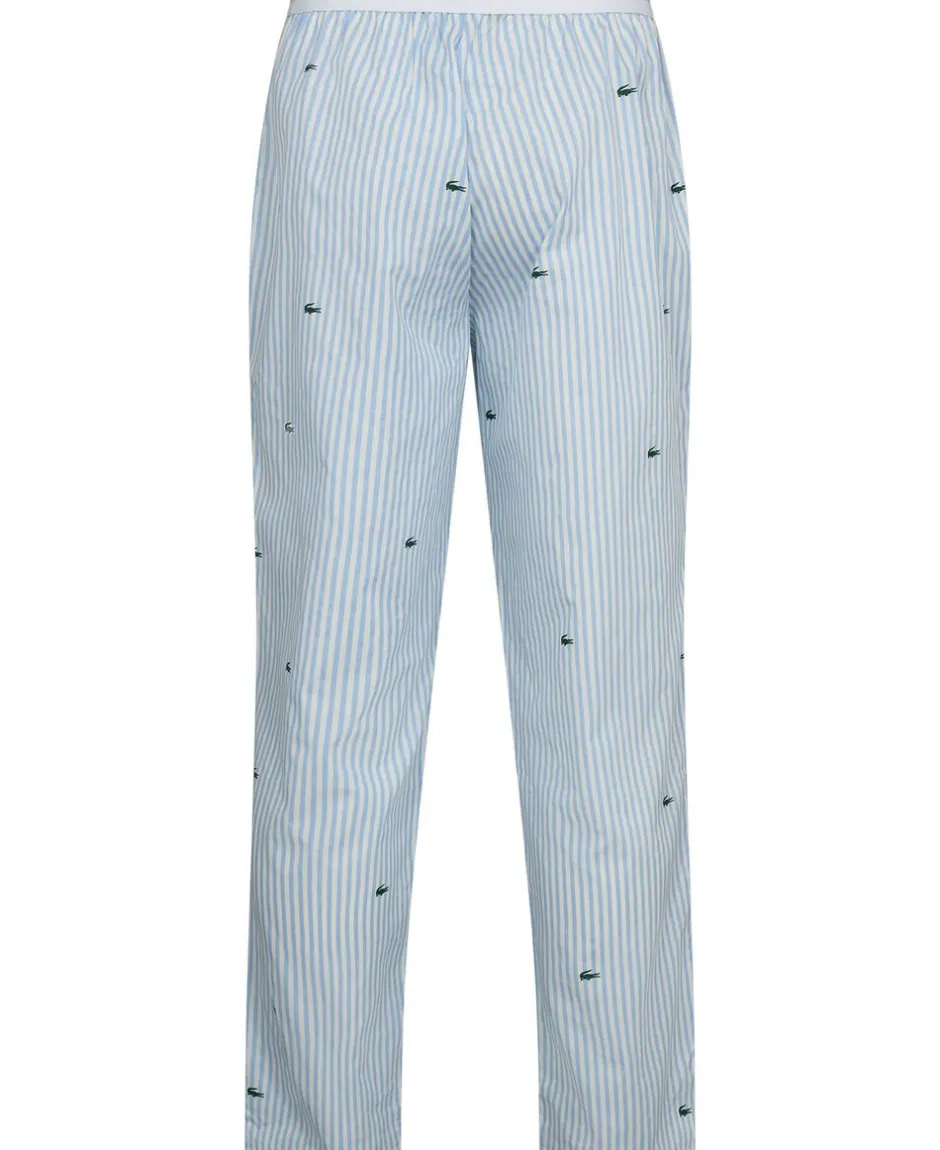 Stribede pyjamasbukser fra Lacoste i en blød kvalitet af 100% bomuld med allover logoprint. Bukserne er enkle i modellen med en bred elastik i taljen, sidelommer, en løs pasform samt en lille, broderet logodetalje i siden.