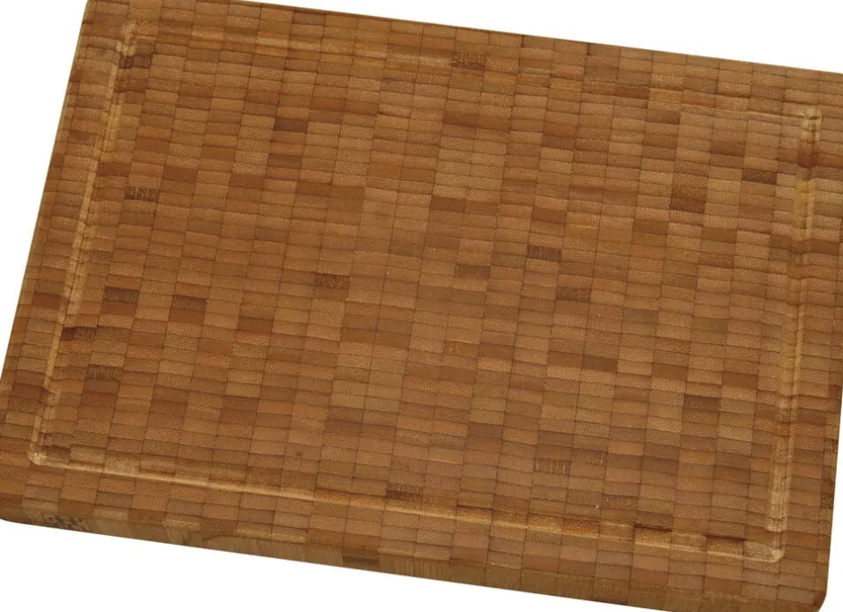 Et godt skæreunderlag til køkkenet skal være stabilt og let at rengøre, samtidig må det ikke bevirke at knivbladene slides for hurtigt. ZWILLING skærebrættet i bambus er optimalt hvad dette angår, og kan benyttes som underlag når der skal hakkes eller skæres alle typer madvarer. Brættet har saftrille på den ene side, men kan benyttes på begge. Bør kun vaskes af i håden i varmt vand, med et mildt opvaskemiddel og efterfølgende tørres stående. Må ikke udøttes for ekstreme temperaturer eller vedvarende fugt. Den naturlige farve på skærrebrættet bevares bedst ved regelmæssigt at behandle det med en neutral madolie.