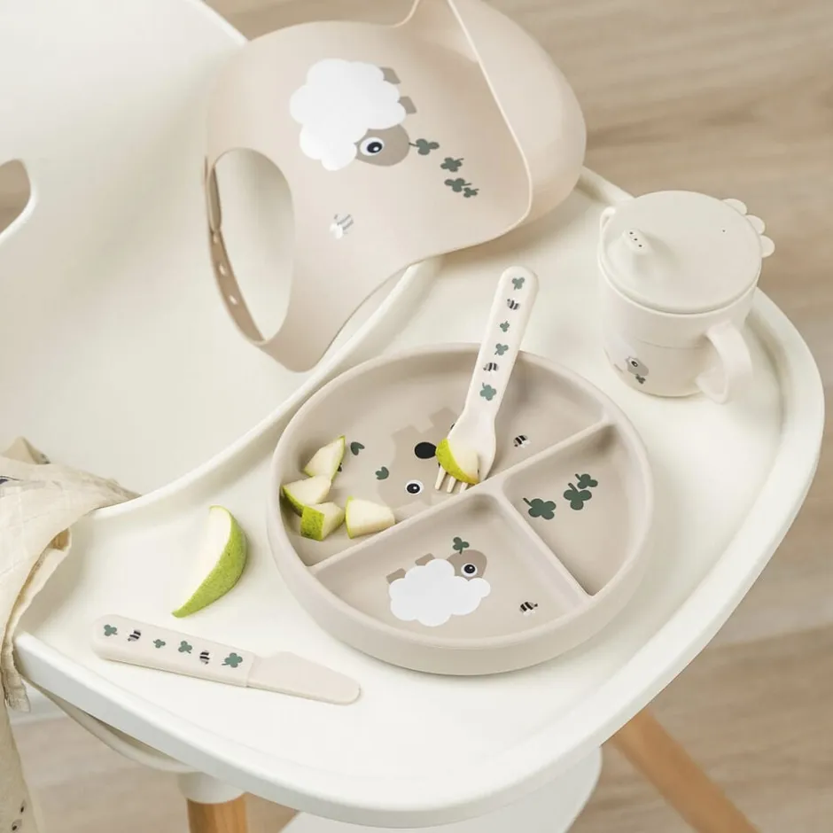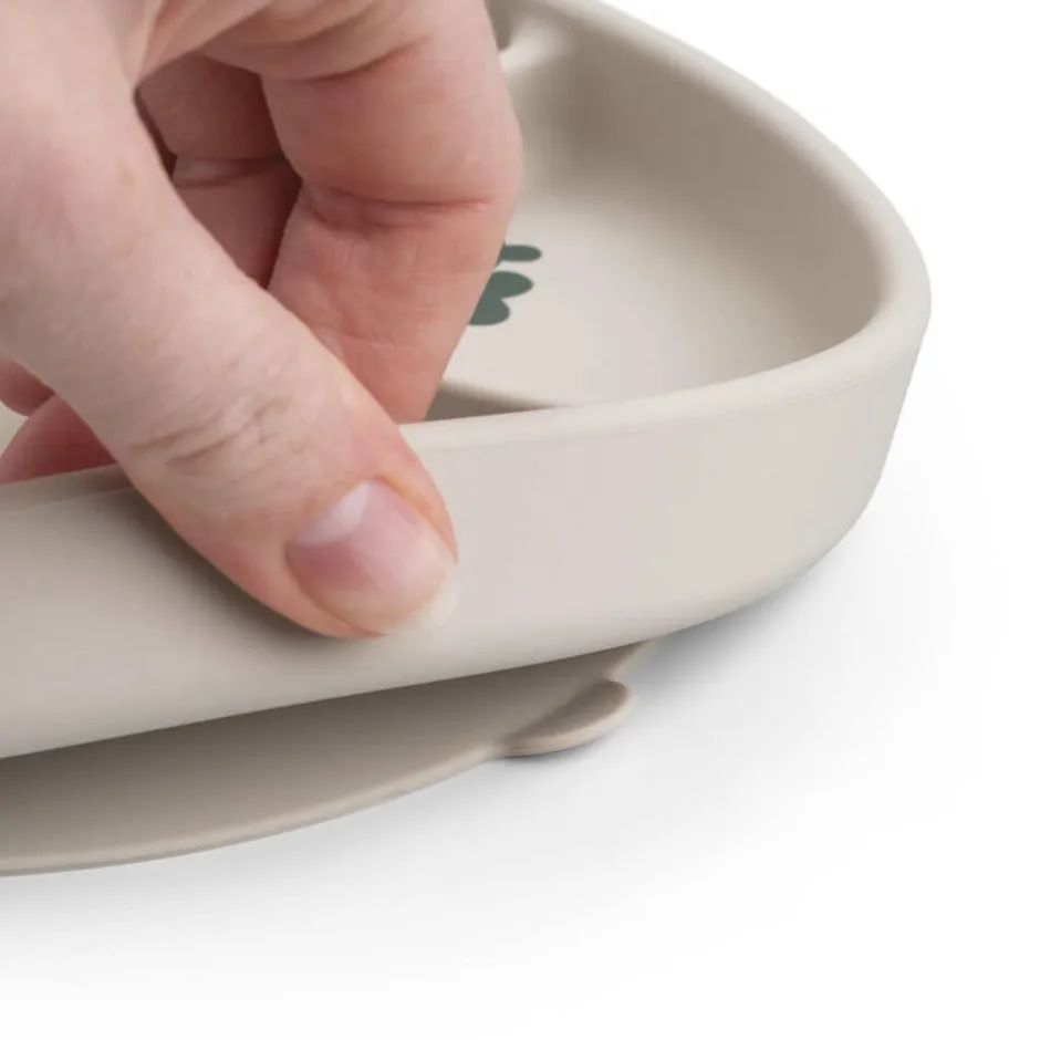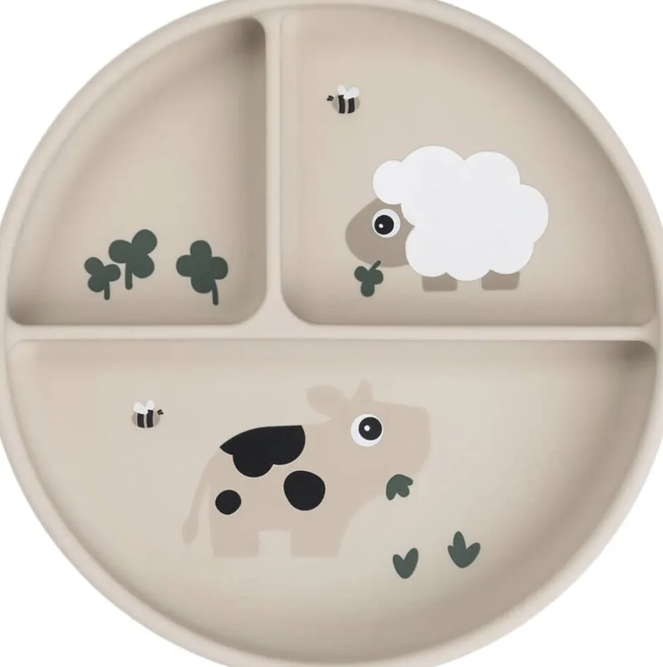En praktisk base med sugekop forhindrer dit barn i at skubbe, vippe eller kaste den opdelte tallerken
