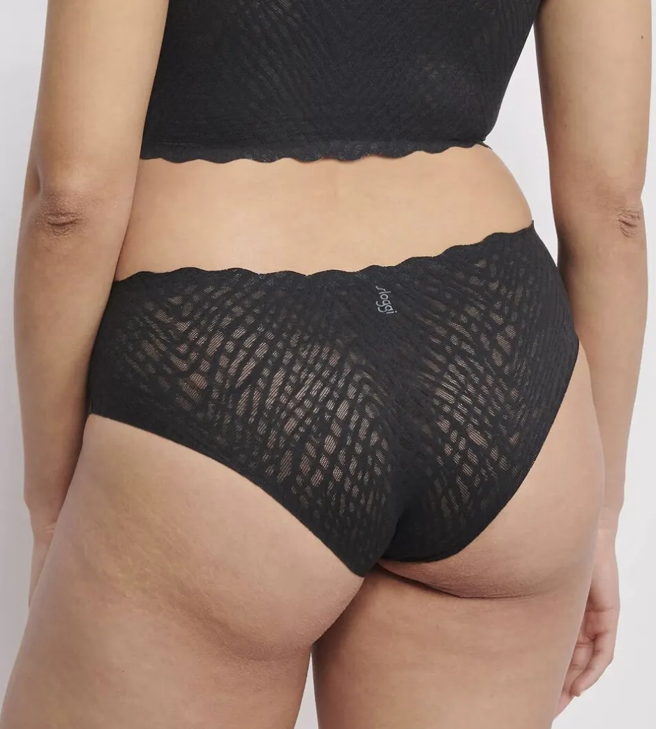 ZERO Feel Bliss Hipster leverer den sømløse, usynlige komfort fra ZERO Feel i romantiske, 360° strækbare blonder. Fritskårne kanter giver et glat, VPL-frit look.