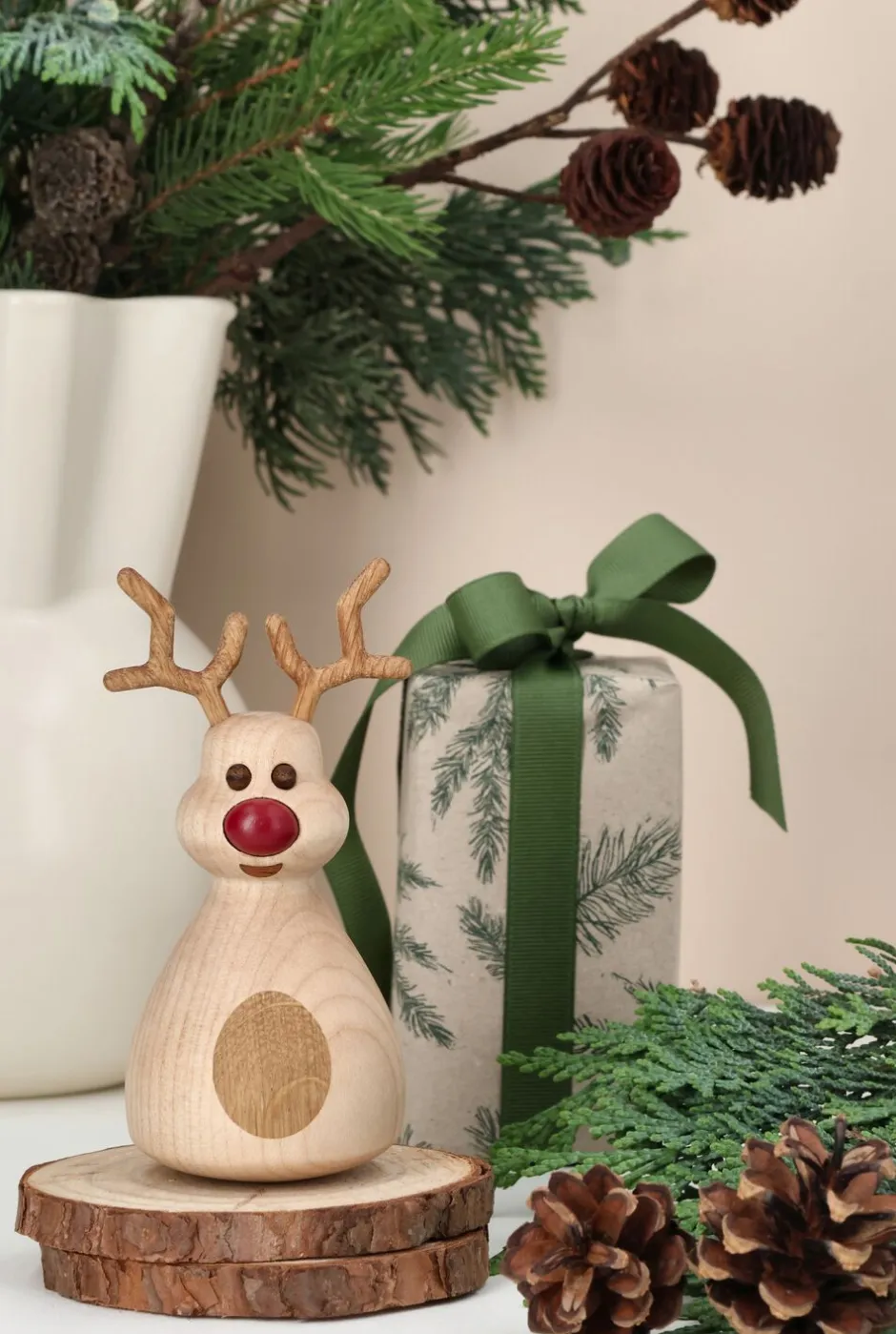 Dizzie er et charmerende lille rensdyr designet af Thor Høy, der bringer magi og glæde til ethvert julepyntet hjem. Med sin livlige udstråling skaber Dizzie en fortryllende atmosfære, perfekt til at sprede julestemning. Hans røde næse lyser vejen op i den tætteste tåge, og med sin tumblereffekt vipper han ivrigt frem og tilbage.