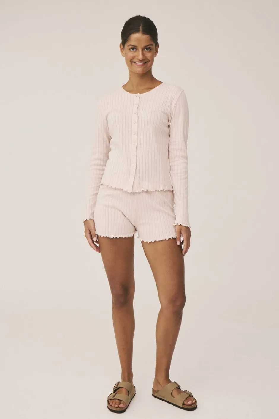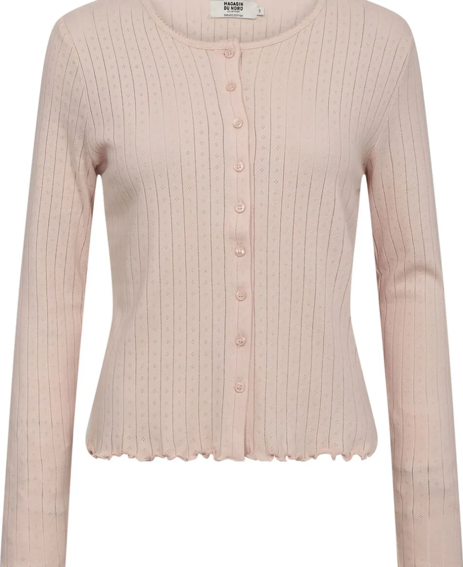 Cardigan fra Magasin du Nord Collection i den blødeste kvalitet af 100% økologisk bomuld med GOTS-certificering. Cardiganen har det fineste pointellemønster, der giver materialet et let, luftigt og dekorativt udtryk. Derudover har cardiganen lange ærmer, blondekant i den runde halsudskæring samt elegante bølgekanter. En skøn cardigan i den lækreste kvalitet.