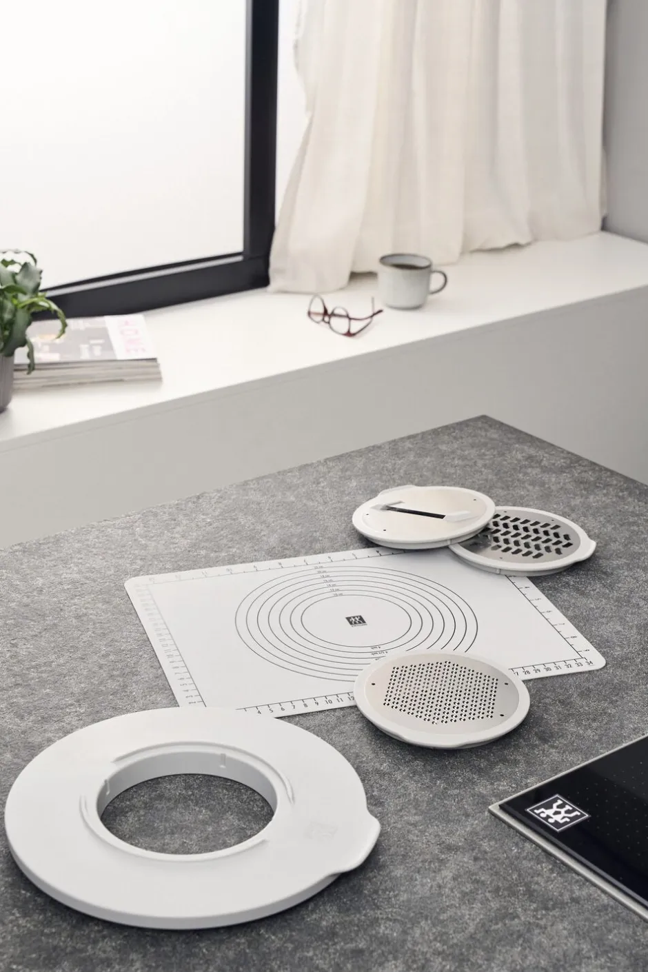 Vores praktiske tilbehørssæt indeholder: En adaptiv stænkskærm. Passer til dine BOWLS og STAUB CERAMIQUE skåle (uden greb) i 18 og 24 cm. Tilbehøret gør det muligt at blende og røre rent, samtidig med at det fungerer som holder til rivetilbehøret, hvis du vil bruge det på store skåle.