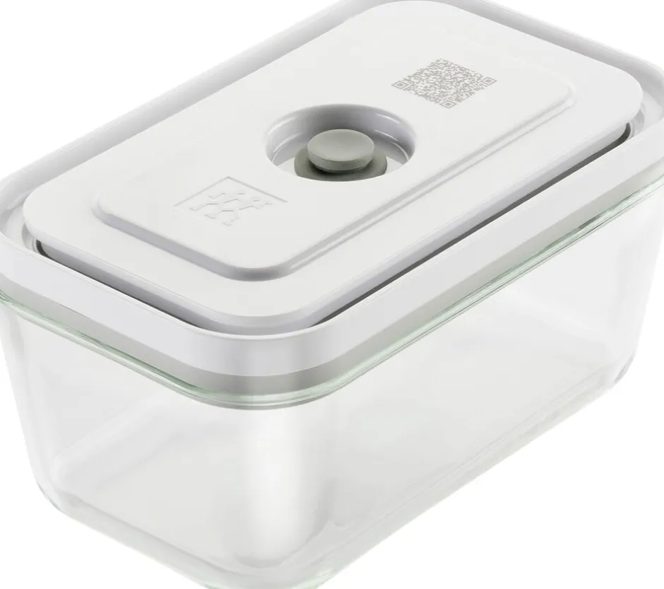 ZWILLING FRESH & SAVE er et vakuumopbevaringssystem, der holder maden frisk op til 5x længere. Opbevaringssystemet bibeholder vigtige næringsstoffer og vitaminer i den opbevarede mad. Nu har du muligheden for at komme i gang med at foodpreppe, minimere madspild, og i det hele taget at optimere måden at gemme råvarer på. Ovnfast uden låg op til 180 °C. Fryseegnet indtil -20 °C. Egnet til mikrobølgeovn og opvaskemaskine. Kapacitet uden låg 0,9 L kan fyldes op til 0,75 L for at kunne vakuumere. Materialer: Borosilikatglas (beholder), BPA fri plast (låg), silikone (ventil, tætning). Vakuumlåg med innovativ dobbelt forseglingsteknologi. Enkel registrering med den gratis app der vha. QR koden holder styr på holdbarhed og indhold. Forhindrer frostskader på madvarer. Holder mad friskere i op til 5 gange længere sammenlignet med andre opbevaringsmetoder uden brug af vakuum. Vakuumopbevaring bibeholder vigtige vitaminer samt næringsstoffer i den opbevarede mad. Beholdere i S, M, L kan nemt stables sammen.