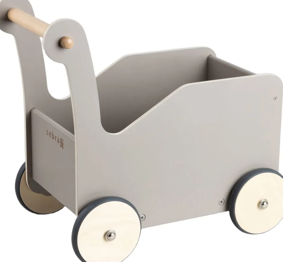 Sebra gå-vognen indbyder til en gåtur tværs over stuegulvet, og er en god support til de første små skridt. Gåvognen er udstyret med gummihjul, der gør, at den kører let og støjsvagt hen over gulvene. De to fronthjul fungerer som støddæmpere, hvis den lille støder ind i noget på sin vej.