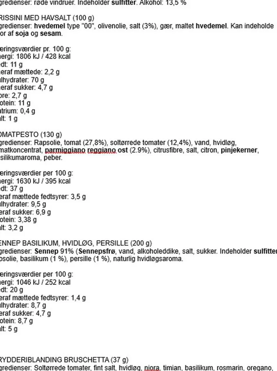 Indbydende gaveæske til alle som elsker et veltilberedt måltid med et godt glas vin. Indhold: rødvin, grissini med havsalt, sennep med persille, basilikum og hvidløg, tomatpesto og krydderiblanding til bruschetta. Pakket i en fin sort æske med logo i guld.
